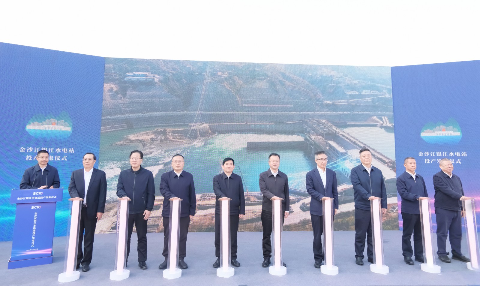 上午9時許,隨著儀式現(xiàn)場下達(dá)首臺機(jī)組開機(jī)發(fā)電指令,吳群剛、吳曉曦、范繼躍、李文志、林建國、李仁杰等領(lǐng)導(dǎo)按下啟動柱,共同啟動金沙江銀江水電站投產(chǎn)發(fā)電,標(biāo)志著該水電站提前一年實(shí)現(xiàn)投產(chǎn)發(fā)電目標(biāo)。