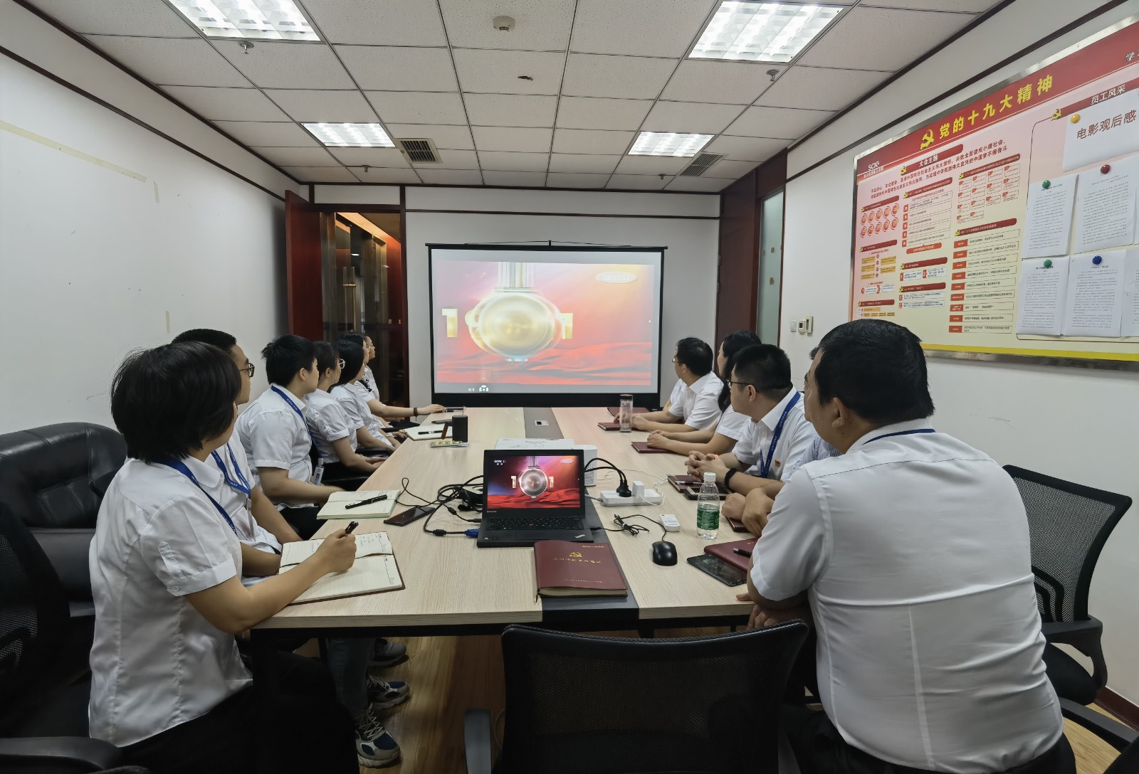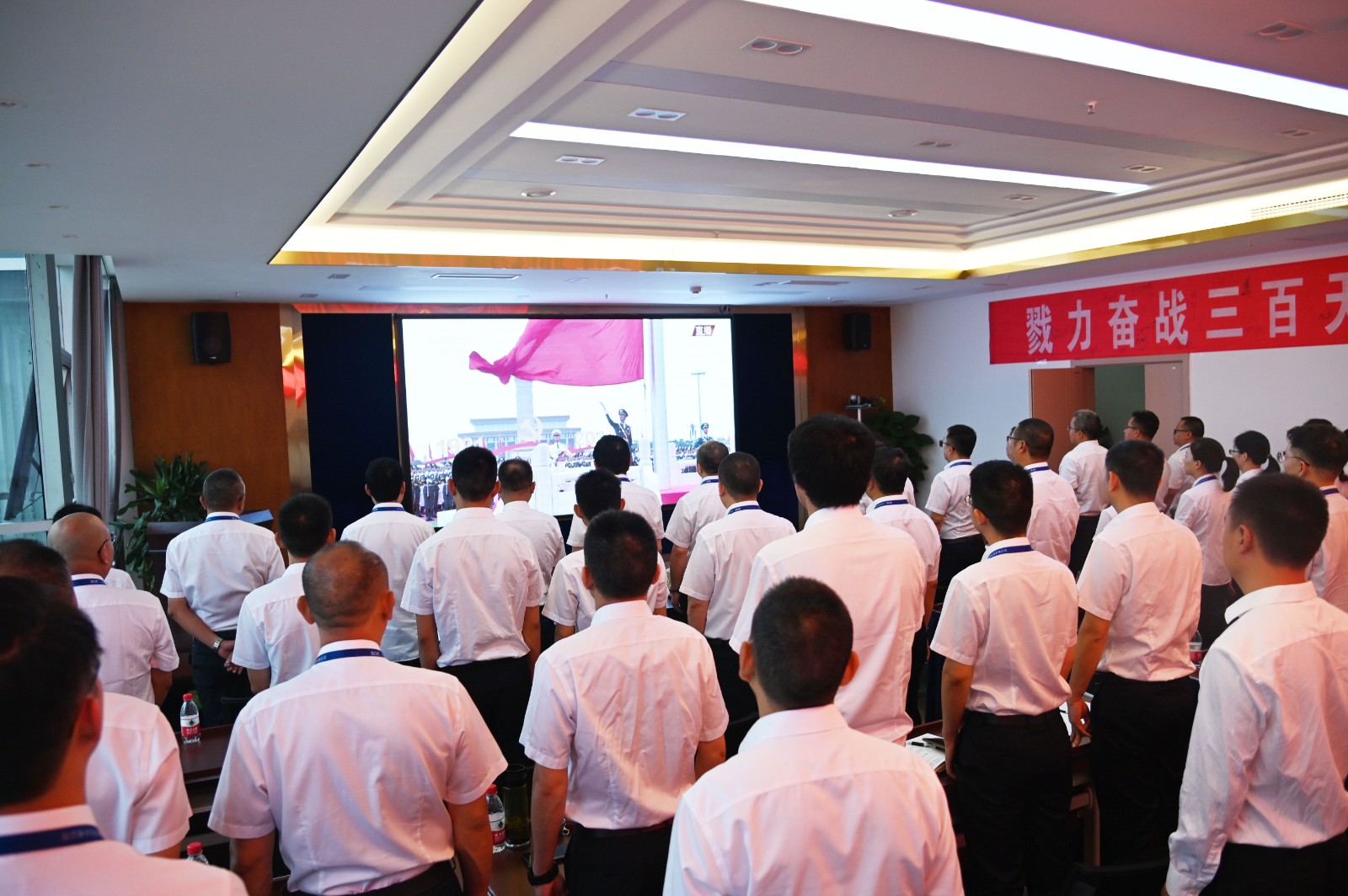 視頻中,習(xí)近平總書記鏗鏘有力的聲音深入人心,從1921到2021,中國共產(chǎn)黨帶領(lǐng)中國人民,從風(fēng)雨飄搖中一路走來,百年征程波瀾壯闊,百年初心歷久彌堅(jiān)。當(dāng)《國歌》《國際歌》相繼響起的時(shí)刻,會場人員紛紛起立,跟隨激昂的旋律整齊高唱。當(dāng)回顧“四史”贊頌黨的偉業(yè)之時(shí),會場人員滿溢出對黨的感恩和身為黨員的自豪。