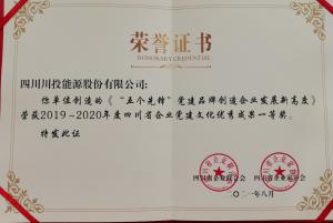 公司“五個先鋒”黨建品牌獲得2019-2020年度四川省企業(yè)黨建文化優(yōu)秀成果一等獎