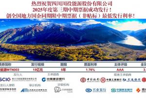川投能源成功發(fā)行15億元中期票據(jù)創(chuàng)全國地方國企同期限中期票據(jù)(非貼標(biāo))最低發(fā)行利率