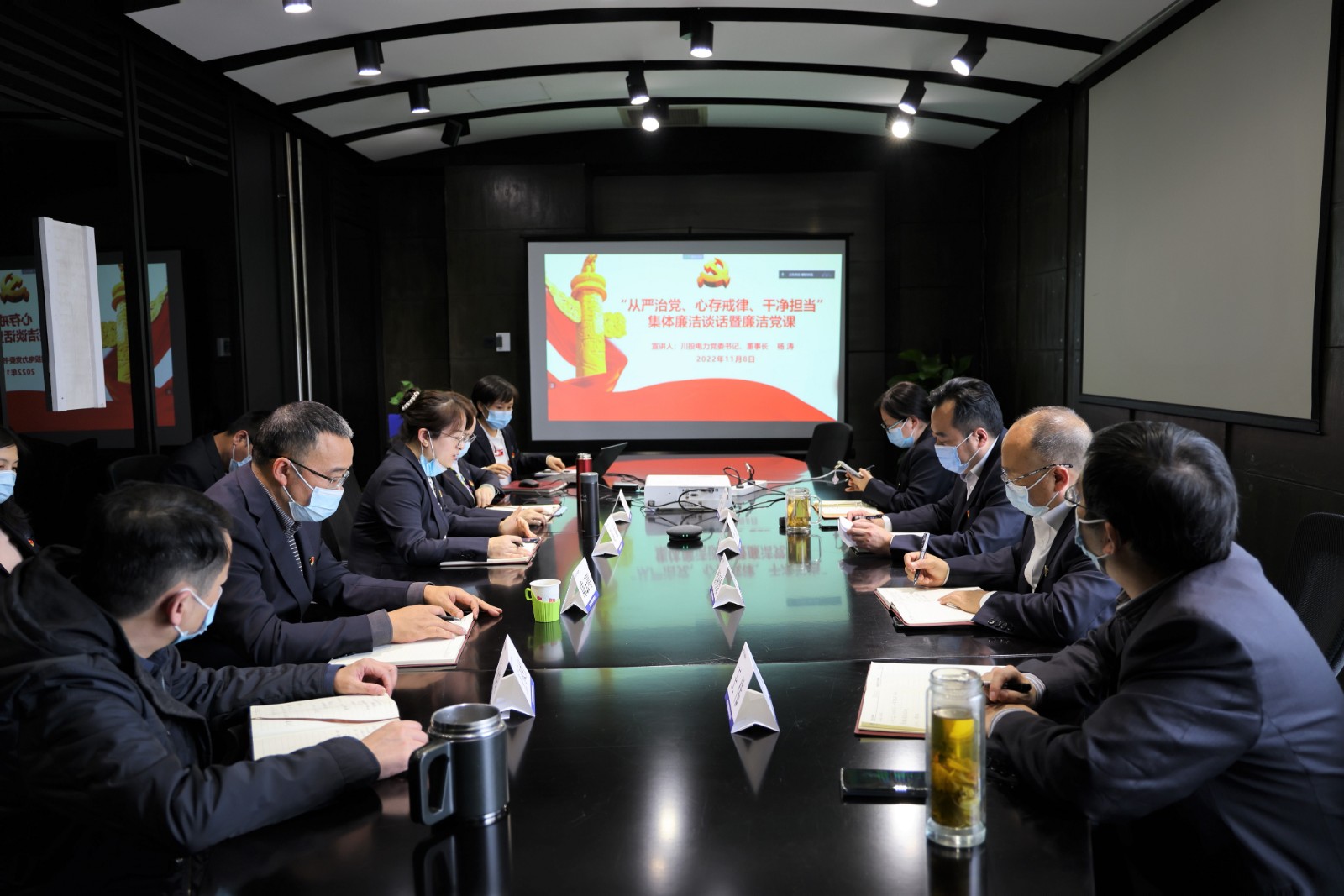 為深入學(xué)習(xí)貫徹黨的二十大關(guān)于推進黨的自我革命、全面從嚴治黨的戰(zhàn)略部署和重點任務(wù),進一步加強黨員干部暨關(guān)鍵崗位人員忠誠履行正風(fēng)肅紀反腐職責(zé)使命,推進黨風(fēng)廉潔建設(shè)和反腐敗工作精神入腦入心。11月8日下午,公司黨委書記、董事長楊濤以《從嚴治黨 心存戒律 干凈擔(dān)當》為題開展集體廉潔談話暨講授廉潔黨課。會議采用視頻+現(xiàn)場方式召開,班子成員、各部門負責(zé)人和機關(guān)黨支部全體黨員暨關(guān)鍵崗位人員、各電廠廠長、副廠長共計40余人參加。