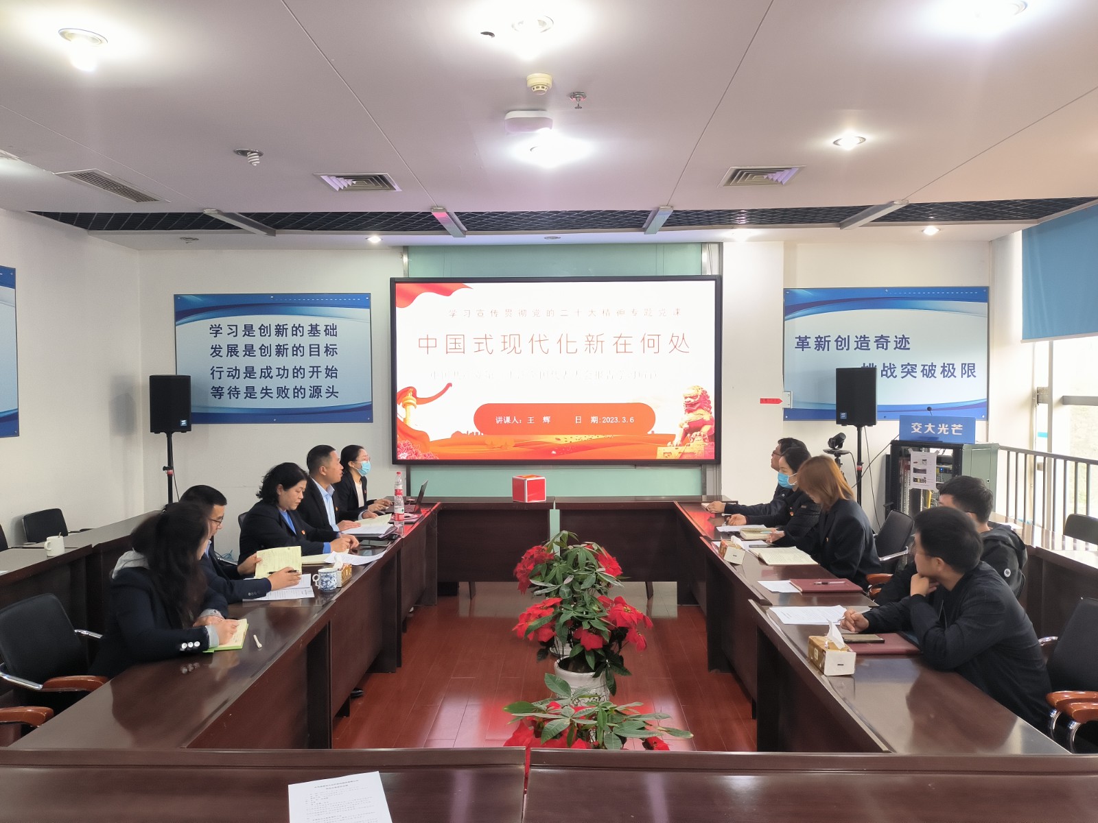 3月6日,為全面深入學(xué)習(xí)領(lǐng)會貫徹落實黨的二十大精神,打牢開好組織生活會的思想基礎(chǔ),交大光芒第一黨支部召開黨員大會,集中學(xué)習(xí)習(xí)近平同志在學(xué)習(xí)貫徹黨的二十大精神研討班開班式上發(fā)表重要講話、中國共產(chǎn)黨第二十屆中央委員會第二次全體會議公報。第一支部書記、公司副總工程師兼研發(fā)中心副總經(jīng)理王輝以《中國式現(xiàn)代化新在何處》為題進行專題黨課。