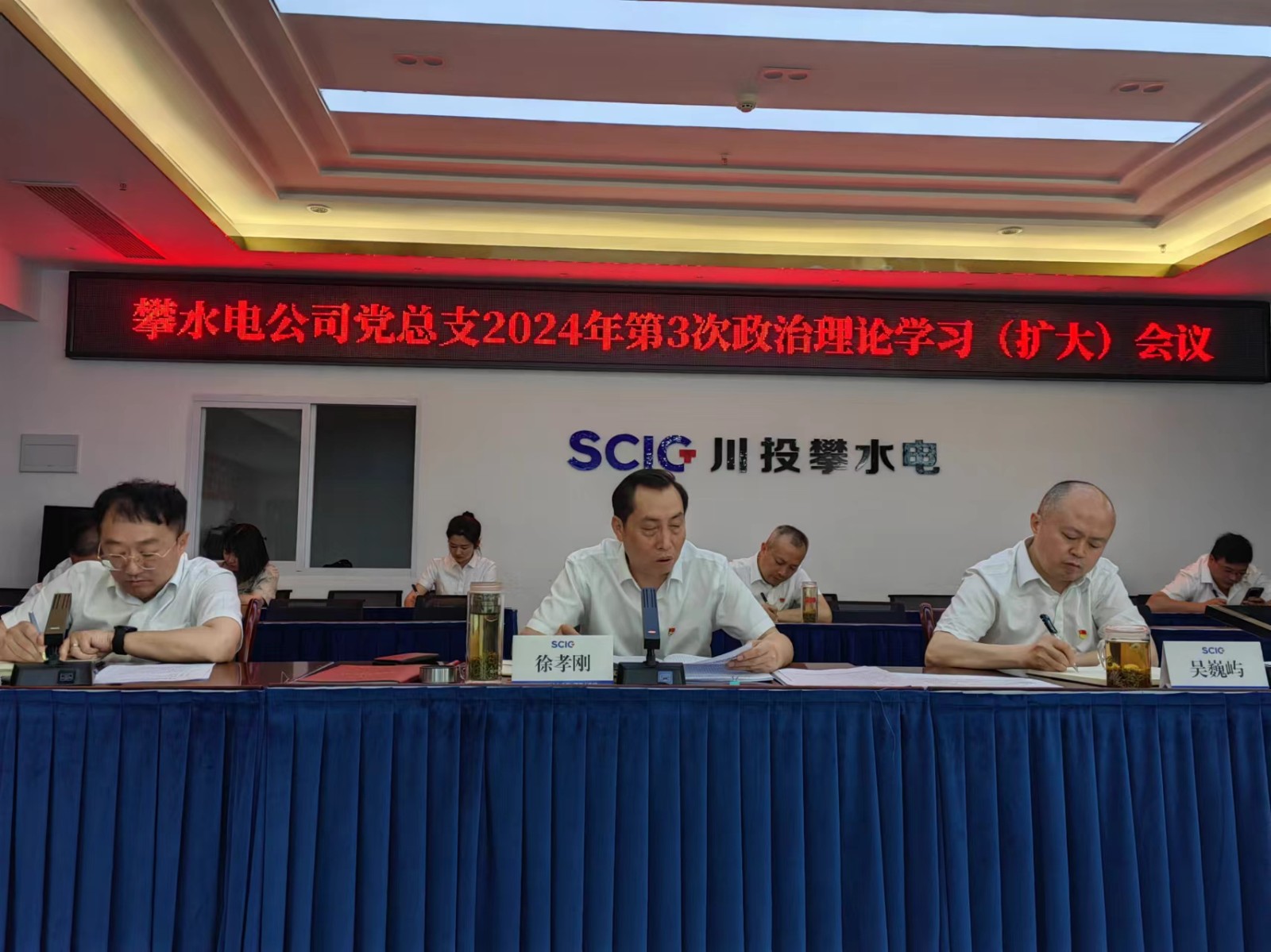 3月29日下午,攀水電公司黨總支在2620會議室組織召開了2024年第3次政治理論學(xué)習(xí)(擴(kuò)大)會議。會議由川投能源副總經(jīng)理、攀水電公司黨總支書記、董事長徐孝剛主持,政治理論學(xué)習(xí)會成員、全體黨員、非黨干部、入黨分子共30余人參加學(xué)習(xí)。