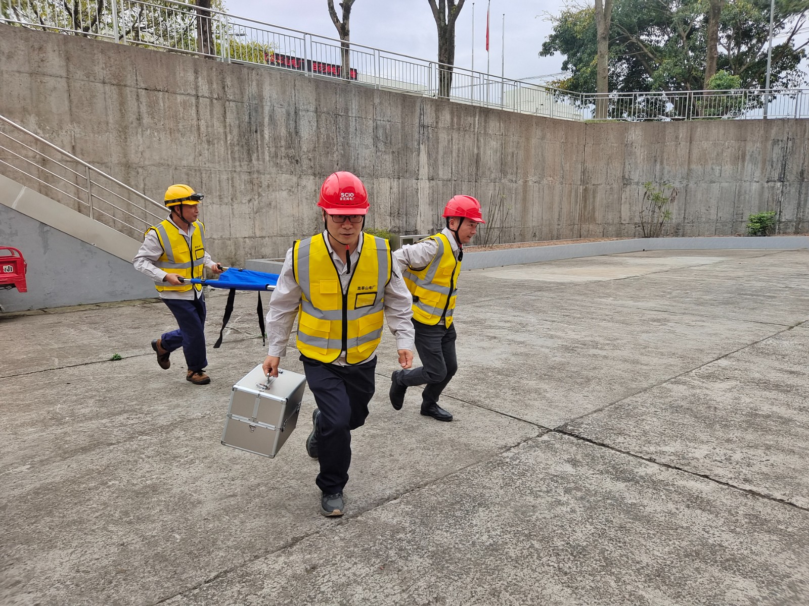 下午14:30分,隨著第一聲警報(bào)聲響起,聯(lián)合演練正式拉開(kāi)序幕,全體參演人員立即停止工作,進(jìn)行緊急避險(xiǎn)。地震預(yù)警結(jié)束后,參演電廠人員,同步按照本電廠疏散路線疏散至應(yīng)急集合點(diǎn)。演練中各廠疏散撤離到應(yīng)急集合點(diǎn)僅在2分內(nèi)全部完成,整個(gè)疏散撤離過(guò)程既緊張,又有條不紊。疏散至緊急集合點(diǎn)后,各廠立即組織清點(diǎn)人數(shù),并向聯(lián)合演練指揮部報(bào)告電廠設(shè)備情況和人員疏散情況。聯(lián)合演練總指揮立即宣布啟動(dòng)地震二級(jí)響應(yīng),各電廠同步啟動(dòng)地震二級(jí)響應(yīng),各廠應(yīng)急救援組迅速行動(dòng)起來(lái),攜帶應(yīng)急搶險(xiǎn)救援設(shè)備,對(duì)本廠內(nèi)的設(shè)備設(shè)施進(jìn)行檢查和搶險(xiǎn)救援。