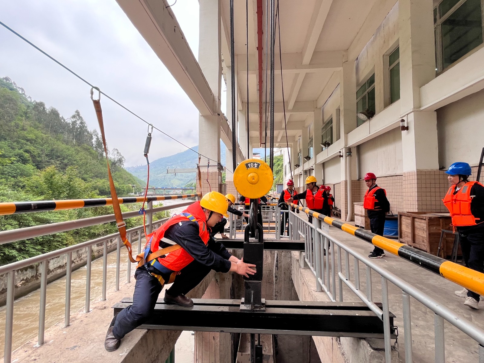 演練前,電廠組織全員學(xué)習(xí)了《玉田電廠2025年防洪度汛應(yīng)急演練方案》,演練于14時(shí)30分正式開始,模擬玉田電廠三臺(tái)機(jī)組帶負(fù)荷93MW,越西縣氣象部門發(fā)布暴雨橙色預(yù)警,越西縣降暴雨已持續(xù)數(shù)小時(shí)。上游宏陽(yáng)電站和團(tuán)結(jié)電站準(zhǔn)備停機(jī)避峰已開閘放水,尼日河道來(lái)水兇猛,預(yù)計(jì)來(lái)水流量達(dá)到800m3/s,閘首水位1274.5m的緊急情況。當(dāng)值值長(zhǎng)接到汛情后,迅速匯報(bào)防汛辦負(fù)責(zé)人。防汛辦負(fù)責(zé)人要求控制好水位,確保人員安全,并準(zhǔn)備停機(jī)避峰。隨后,險(xiǎn)情立即上報(bào)至防汛總指揮,總指揮接到險(xiǎn)情后,立即啟動(dòng)《玉田電廠防汛搶險(xiǎn)應(yīng)急預(yù)案》,成立現(xiàn)場(chǎng)指揮部,統(tǒng)籌調(diào)度防汛辦公室、安全督導(dǎo)組、應(yīng)急搶險(xiǎn)組、應(yīng)急后勤組等多支隊(duì)伍。大壩值班人員接到通知后拉響防洪警報(bào),開啟沖砂閘和泄洪閘緩慢放水,控制水位,同時(shí)做好防汛物資準(zhǔn)備,并啟動(dòng)柴油發(fā)電機(jī)。當(dāng)班值長(zhǎng)向調(diào)度申請(qǐng)停機(jī)避峰,并及時(shí)向相關(guān)部門及下游電站通報(bào)汛情。三臺(tái)機(jī)組停機(jī)后,逐步開啟沖砂閘和泄洪閘進(jìn)行泄洪。應(yīng)急搶險(xiǎn)組完成了廠房柴油發(fā)電機(jī)啟動(dòng)試驗(yàn),落下機(jī)組尾水閘門,關(guān)閉主廠房防洪門并堆砌防洪沙袋。運(yùn)行值班人員加強(qiáng)設(shè)備和邊坡巡查。后勤組負(fù)責(zé)人員疏散和后勤保障工作。各小組協(xié)同作戰(zhàn),演練于15時(shí)49分圓滿結(jié)束。
