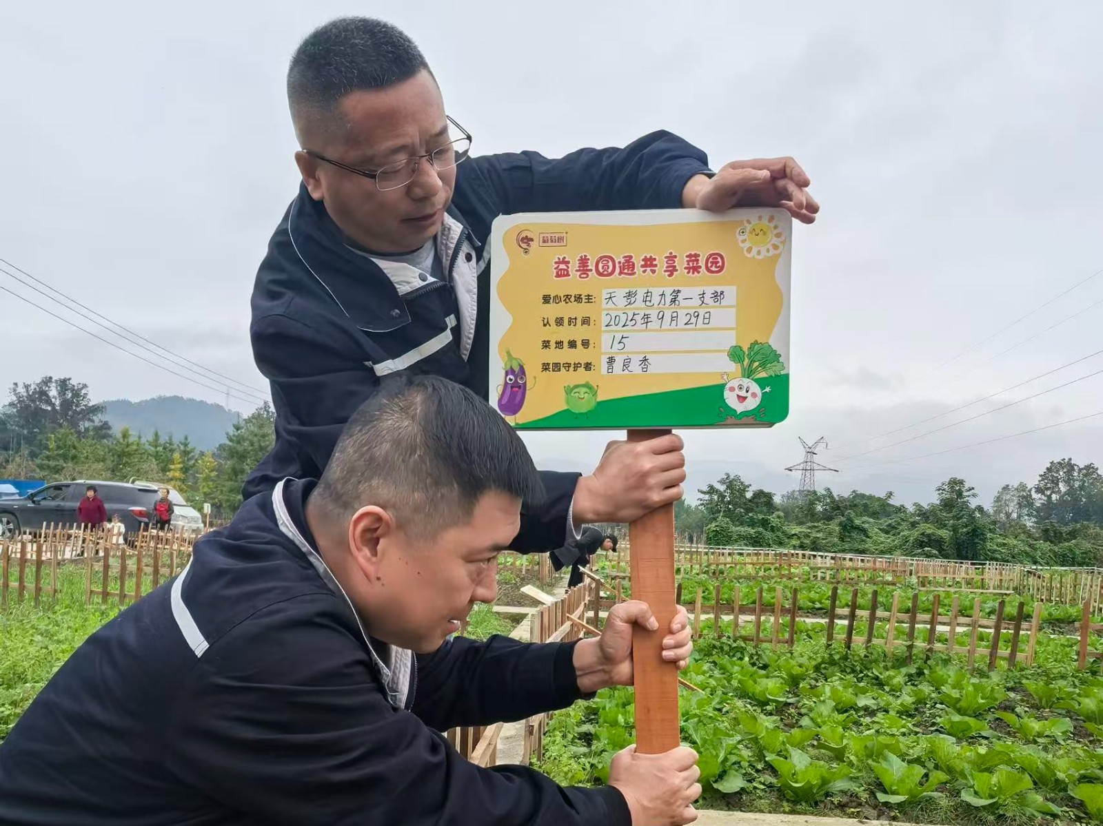 公司黨員和暖陽服務(wù)隊員們滿懷熱情走進菜園,為認領(lǐng)的菜地插上印有支部名稱的責(zé)任標(biāo)牌,并卷起袖子、俯下身子,投入到除草、翻土的農(nóng)事勞動中。汗水浸濕衣衫,笑容洋溢臉龐,這堂設(shè)在田間地頭的“特殊課堂”,讓黨員們在躬身實踐中深刻領(lǐng)悟了“一枝一葉總關(guān)情”的為民情懷,進一步堅定了服務(wù)群眾的初心信念。