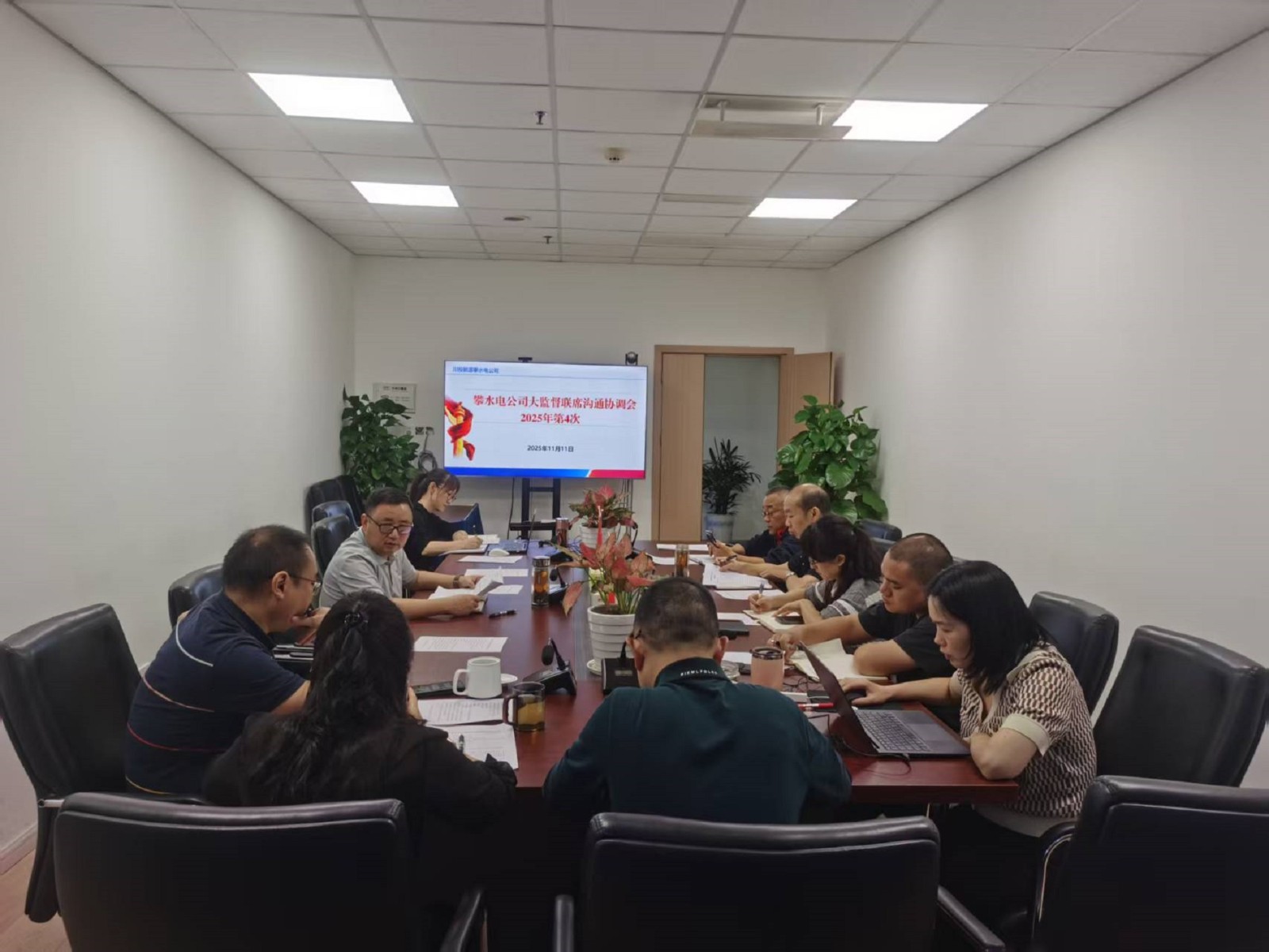 為進(jìn)一步鞏固擴(kuò)大深入貫徹中央八項(xiàng)規(guī)定精神精神學(xué)習(xí)教育成果,扎實(shí)推進(jìn)作風(fēng)建設(shè)與監(jiān)督效能提升,11月11日,攀水電公司召開2025年第4次大監(jiān)督聯(lián)席溝通協(xié)調(diào)會(huì)。會(huì)議由公司黨總支委員、紀(jì)檢小組長(zhǎng)楊銳主持,各部門負(fù)責(zé)人及支部紀(jì)檢委員共12人參加。