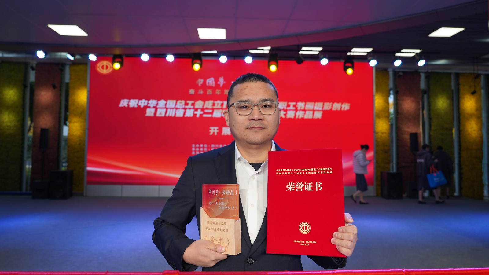 12月3日,由四川省總工會(huì)主辦的“慶祝中華全國(guó)總工會(huì)成立100周年書(shū)畫(huà)攝影采風(fēng)創(chuàng)作展暨四川省第十二屆職工書(shū)畫(huà)攝影大賽”頒獎(jiǎng)及展覽儀式在成都市勞動(dòng)人民文化宮廣場(chǎng)舉行。川投能源所屬攀水電公司員工田永志創(chuàng)作的攝影作品《銀江水電站建設(shè)(組圖)》,從1569件參賽作品中脫穎而出,憑借其扎實(shí)的攝影功底與鮮明的主題表達(dá),榮獲大賽金獎(jiǎng),位列獲獎(jiǎng)?wù)甙袷住L镉乐静粌H是本屆大賽攝影組三名金獎(jiǎng)得主之一,也是省屬企業(yè)中唯一獲得攝影組金獎(jiǎng)的選手。