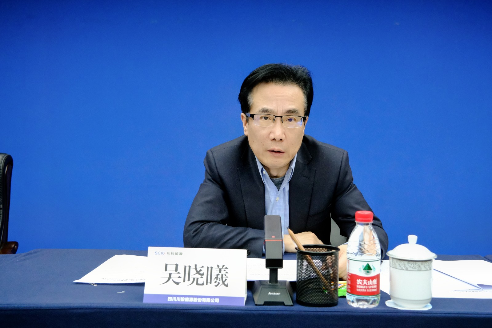 川投能源公司黨委書記、副董事長、總經(jīng)理?xiàng)詈樽鞅響B(tài)發(fā)言。