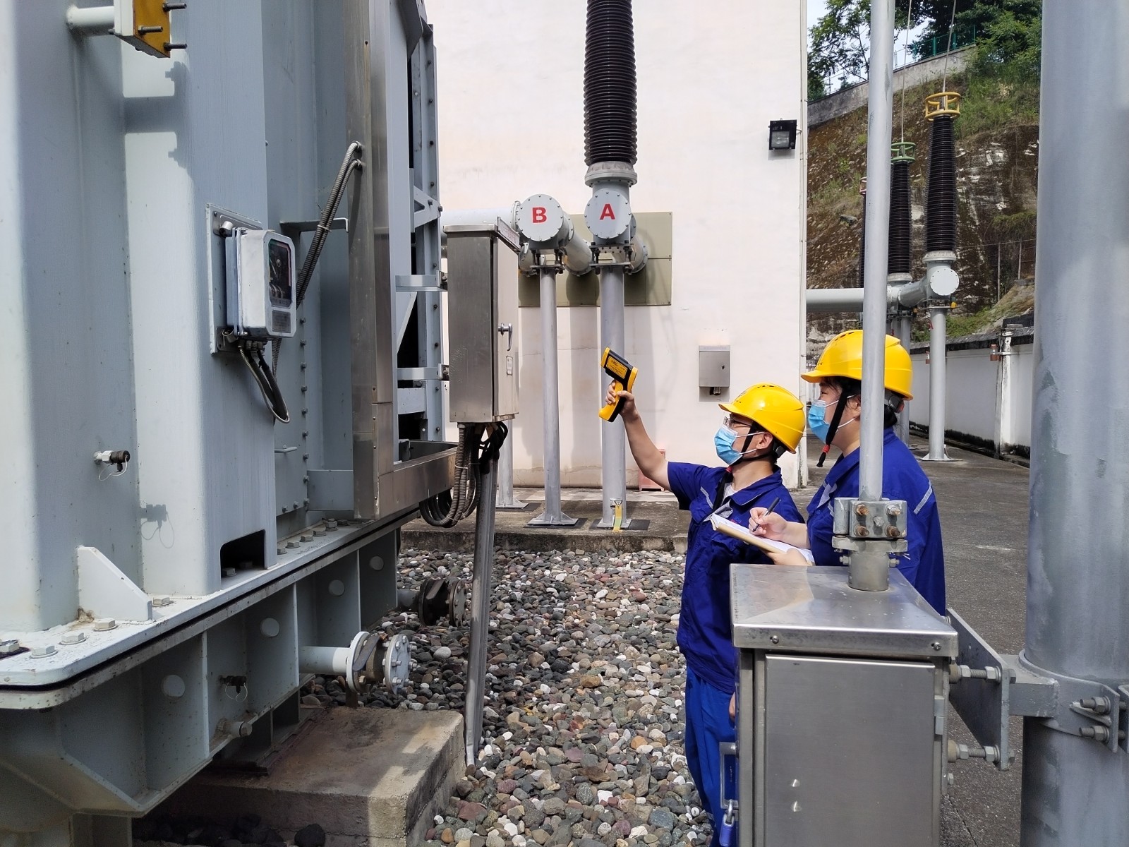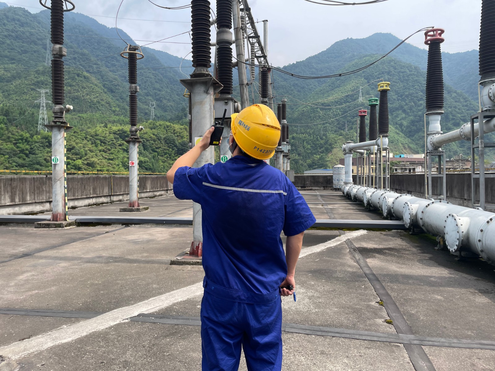 受涼山州氣候影響,較大晝夜溫差給玉田電站設(shè)備穩(wěn)定運行增添雙重負荷考驗?!皩幾鰺o用功,不留一隱患。”入夏以來,廠長孫萬慶始終堅持每日帶領(lǐng)維護人員在中午高溫時段到廠區(qū),大壩等對電力設(shè)備設(shè)施開展帶電檢測和紅外測溫。7月11日午時,1號主變C相低壓側(cè)導管突然出現(xiàn)輕微滲油現(xiàn)象,維護人員頭頂烈日,“汗”衛(wèi)堅守在1號主變前,精心監(jiān)視滲油狀況,研討避峰消缺方案,中控室監(jiān)控人員加強遠方監(jiān)視,奮戰(zhàn)9小時,奮力保供電。
