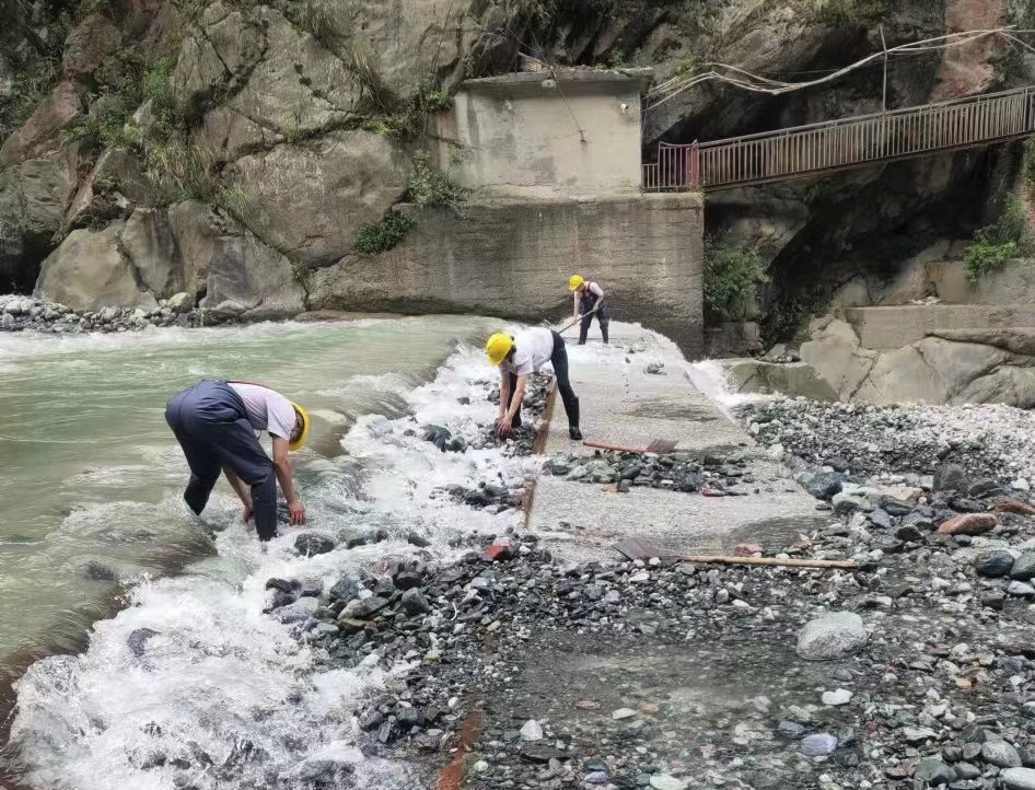 連日驟減的來水量迫使天彭電力鳳鳴湖水庫水位只能保持在低位運行。此刻,對保供者來說,每一滴來水都彌足珍貴,而做好引水工作就成為了保障發(fā)電生產(chǎn)和城區(qū)供水的重中之重。天彭電力上下聯(lián)動,全員作戰(zhàn),沙金車間、鳳鳴橋車間一線堅守責任到崗、迅速行動,頂著烈日清理底格欄柵壩壩面砂石、庫區(qū)進水閘浮渣和前池淤積物,嚴格執(zhí)行“每日一小撈、三日一大撈、洪水天天撈”制度,做到多引水和保水源“兩手抓、兩手硬”,從源頭上守住保水保電的“生命線”。