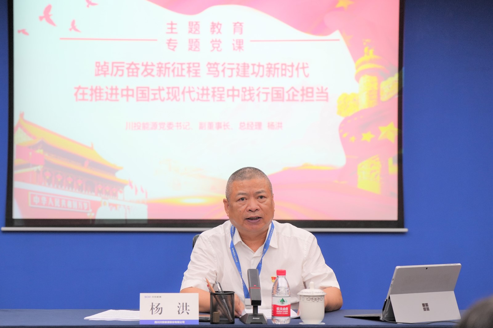 隨后,他以《踔厲奮發(fā)新征程、篤行建功新時代,在推進中國式現(xiàn)代進程中踐行國企擔當》為題,結(jié)合自身學習工作實際,從“中國式現(xiàn)代化理論體系的發(fā)展演進歷程”“認識把握中國式現(xiàn)代化的中國特色、本質(zhì)要求、重大原則”“在中國式現(xiàn)代化進程中貢獻川投能源力量”等3個部分進行講授。