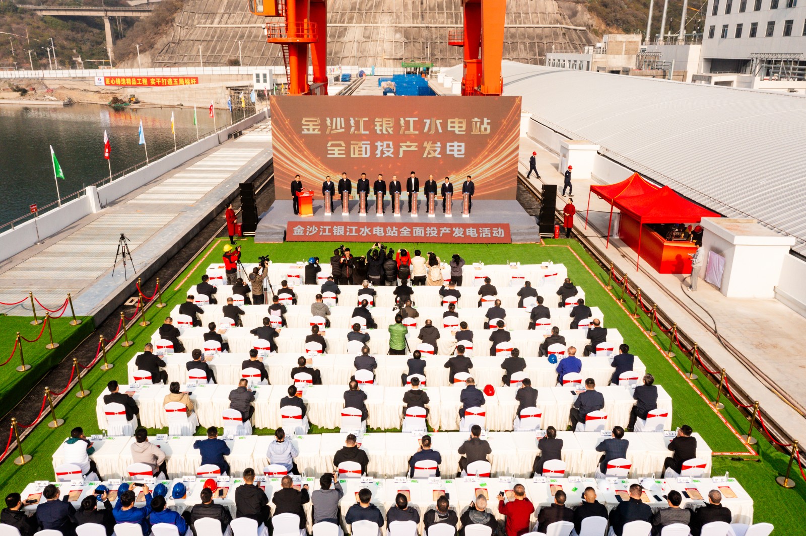 哈爾濱電氣集團黨委常委、副總經(jīng)理張連彬,長江設計集團黨委委員、副總經(jīng)理敖昕,中國水利水電第五工程局黨委副書記、董事、總經(jīng)理張勇,省能源局、省國資委、攀枝花市有關部門,四川能源發(fā)展集團、川投能源、長江設計集團、華潤電力、攀國投相關領導,參建單位、合作單位等相關領導和人員共計100余人出席活動。