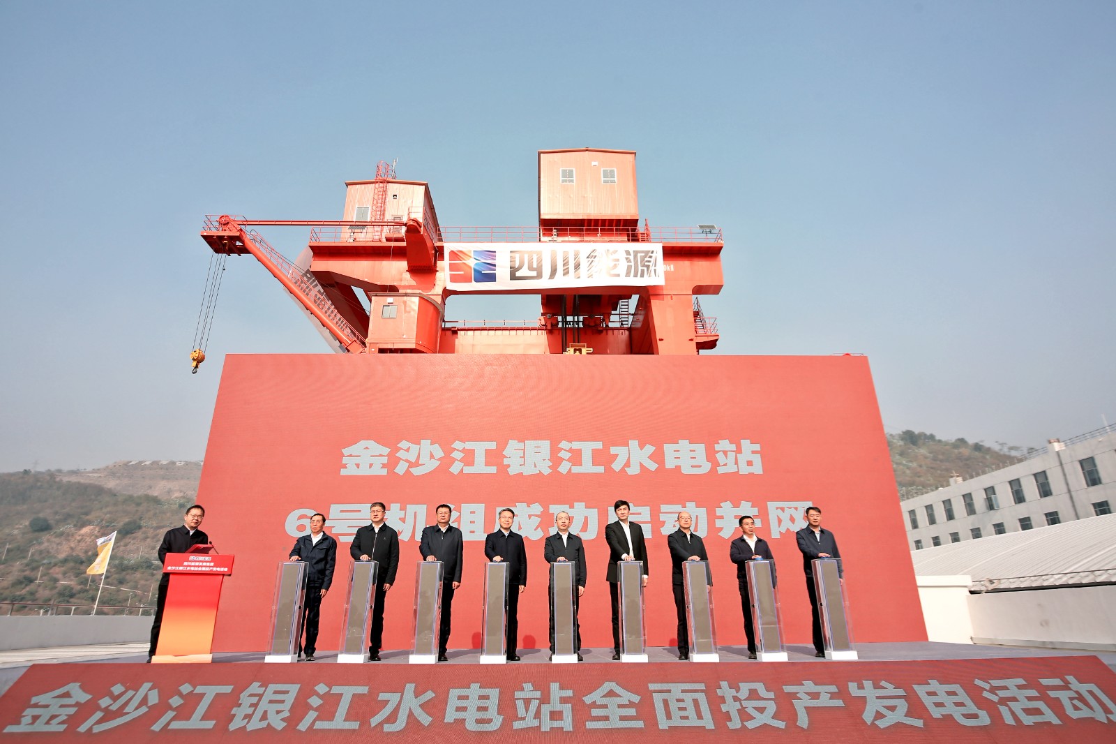 12月19日上午11時,四川能源發(fā)展集團金沙江銀江水電站全面投產(chǎn)發(fā)電活動在電站大壩上舉行,四川省國資委黨委委員、副主任張敏,攀枝花市政府黨組成員、副市長許軍峰,四川省能源局副局長曾光,四川能源發(fā)展集團黨委副書記、副董事長、總經(jīng)理鄧超出席活動并致辭,集團黨委委員、副總經(jīng)理楊陽主持活動,總經(jīng)理助理、川投能源黨委書記劉勝金出席活動。