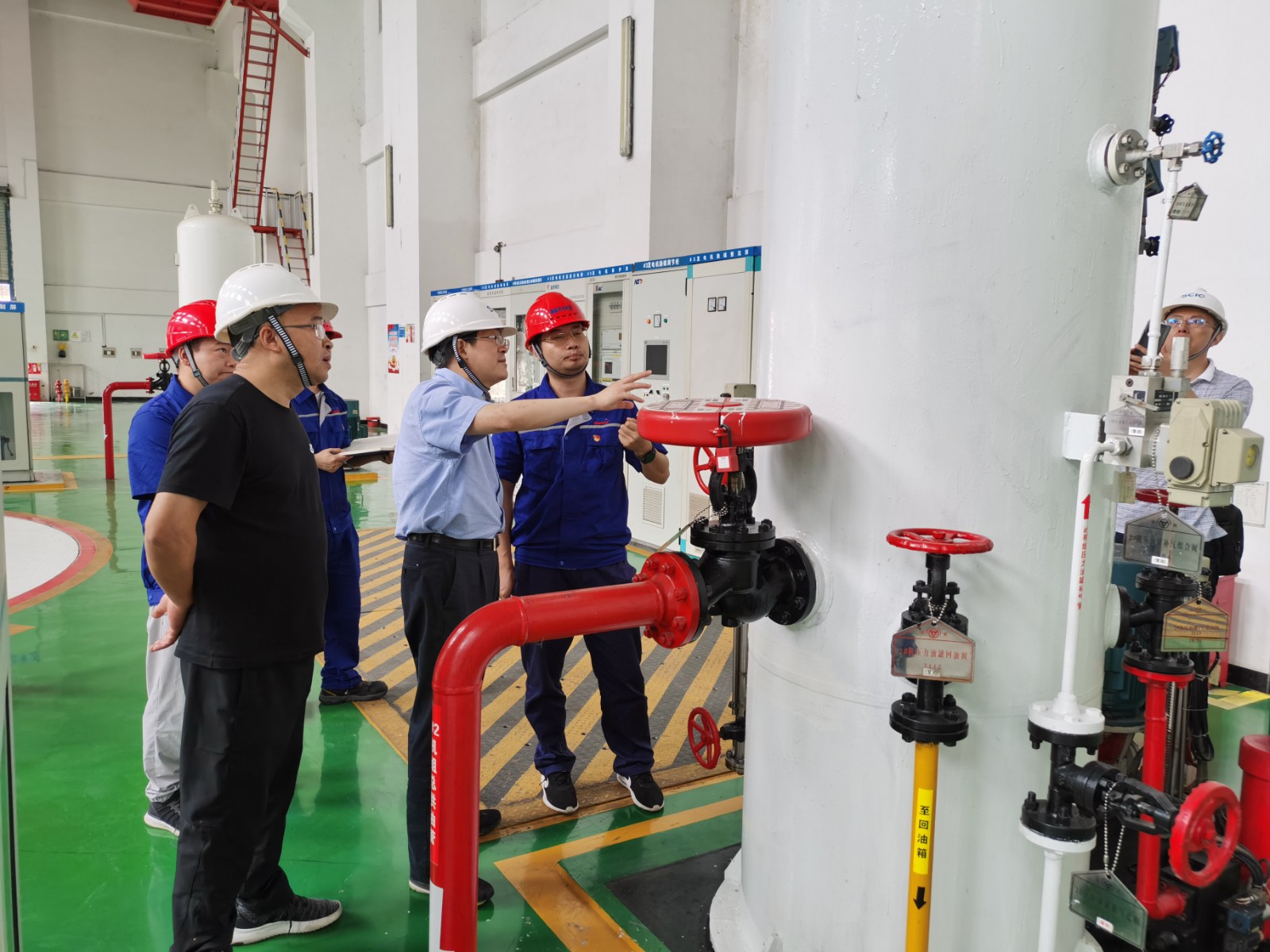 楊平一行先后前往腳基坪電站大壩及發(fā)電廠區(qū)實(shí)地檢查指導(dǎo),檢查組對大壩水庫調(diào)度情況、應(yīng)急電源保障、防汛物資儲備、閘門啟閉設(shè)備與電站的壓力容器特種設(shè)備、發(fā)電機(jī)主設(shè)備及GIS設(shè)備進(jìn)行了專項(xiàng)檢查。