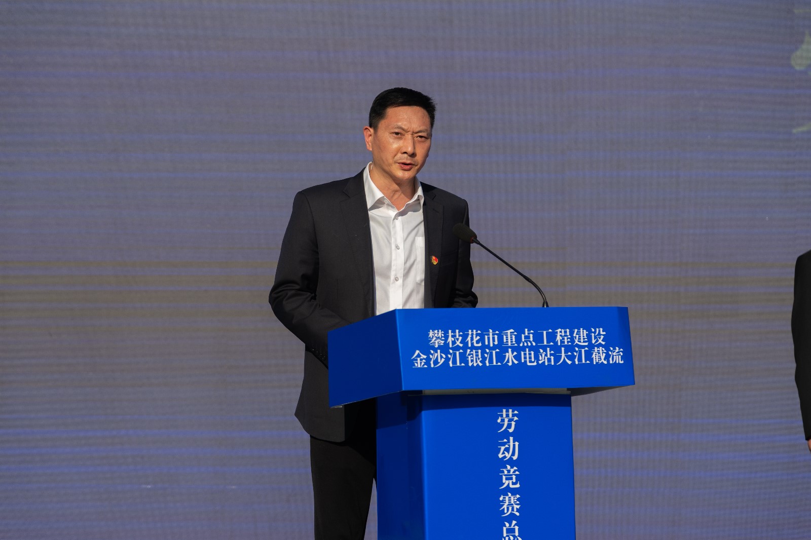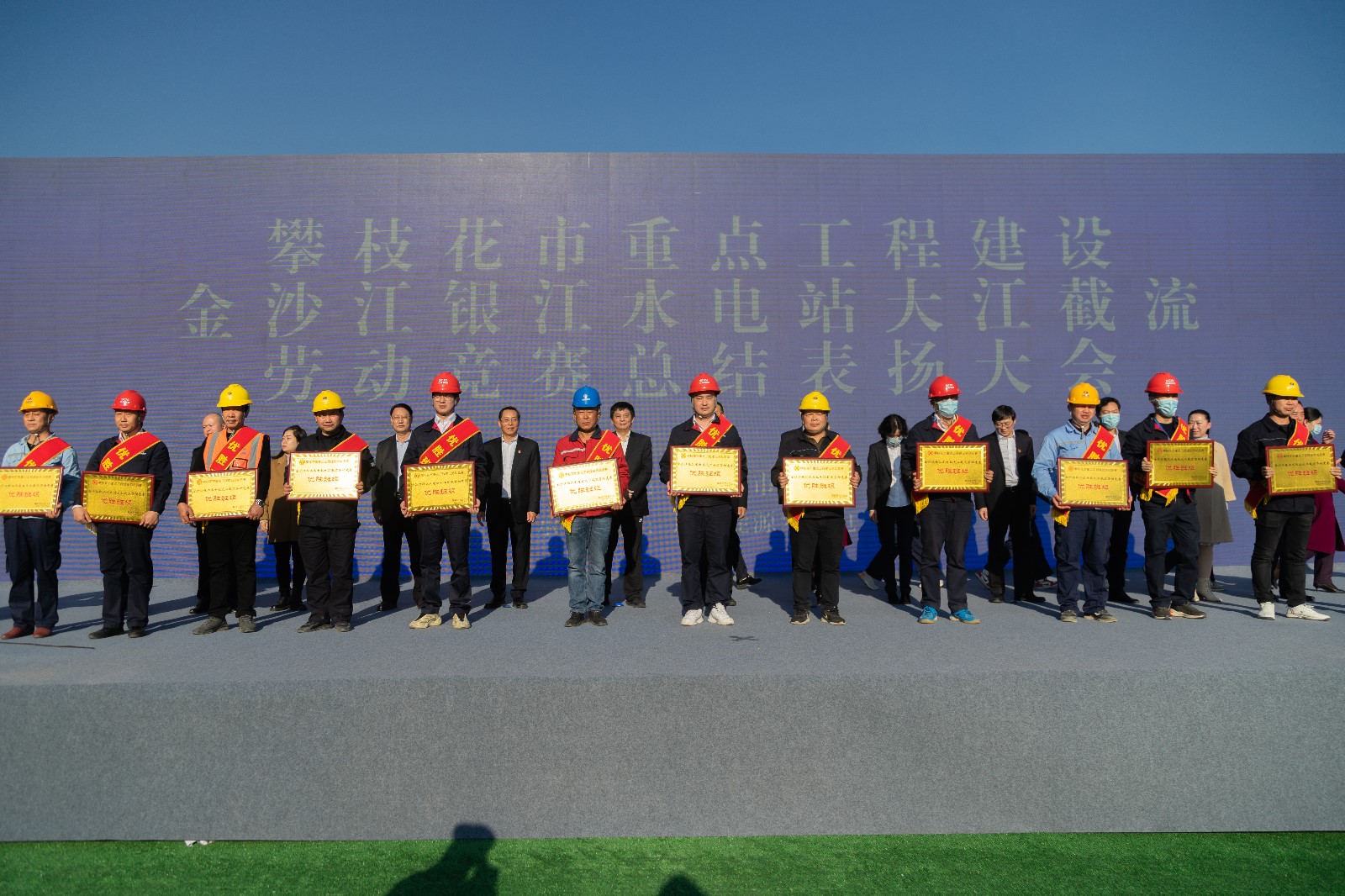 12月16日下午,在銀江水電站大江截流之際,攀枝花市總工會與攀水電公司工會聯(lián)合舉行了金沙江銀江水電站大江截流勞動競賽活動總結(jié)表揚(yáng)大會,隆重表揚(yáng)在勞動競賽中作出積極貢獻(xiàn)的先進(jìn)集體和個人。市總工會黨組書記、副主席黃武明,川投能源黨委副書記、工會主席冉蘭平出席本次大會,東區(qū)總工會相關(guān)領(lǐng)導(dǎo)、川投能源領(lǐng)導(dǎo)及各部門負(fù)責(zé)人、攀水電公司領(lǐng)導(dǎo)及各參建單位共100余人參加會議,會議由攀水電公司黨總支委員、董事會秘書、工會主席鄧勇主持。
