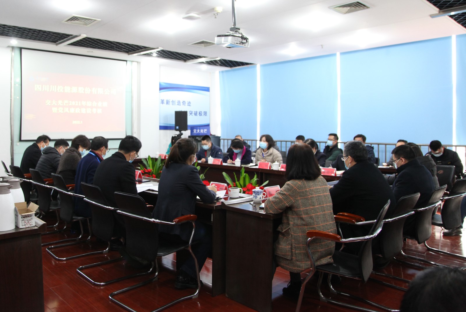 根據(jù)川投能源2021年度考核工作的統(tǒng)一部署,1月11日,川投能源黨委委員、財(cái)務(wù)總監(jiān)、考核組長(zhǎng)劉好率隊(duì)赴交大光芒開展2021年度綜合業(yè)績(jī)暨黨風(fēng)廉政建設(shè)考核工作。川投能源考核組、交大光芒經(jīng)營(yíng)班子、中層副職以上管理人員及一線員工代表參加考核會(huì),川投能源證券事務(wù)部、資本運(yùn)營(yíng)部經(jīng)理魯晉川主持會(huì)議。
