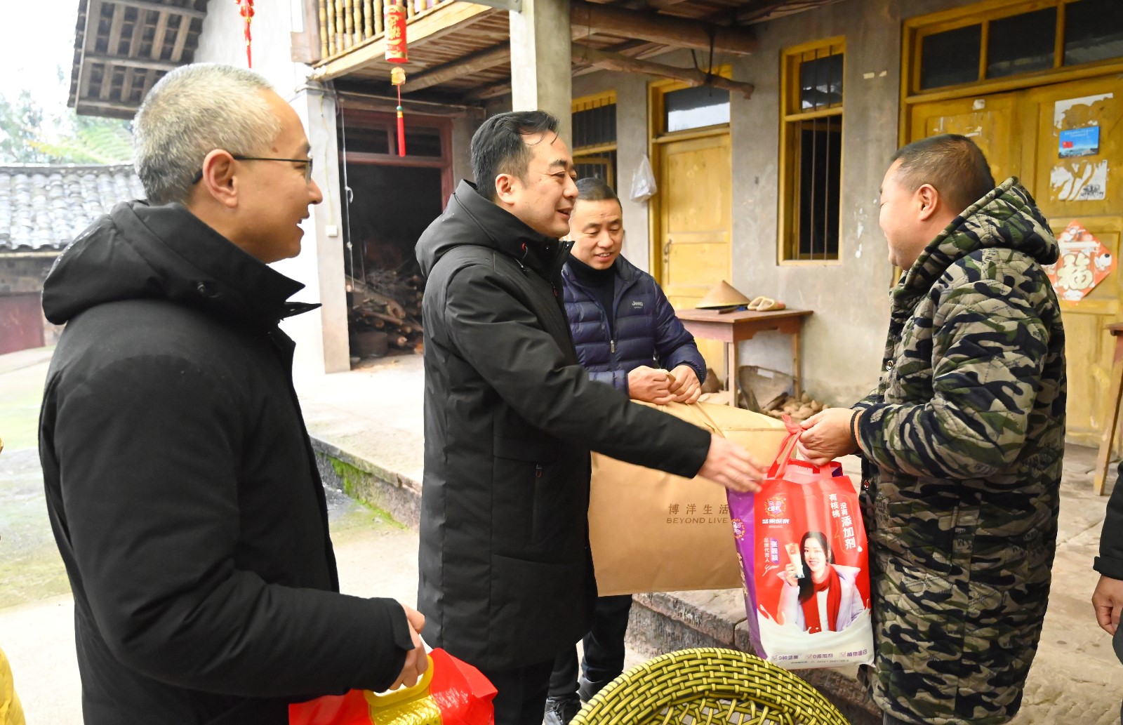 新春佳節(jié)即將來臨之際,為把槽漁灘公司的關(guān)懷和溫暖送到鄉(xiāng)村振興聯(lián)系戶的手中,讓他們度過一個歡樂喜慶的節(jié)日。1月12日,公司黨委書記、董事長楊濤帶領(lǐng)公司鄉(xiāng)村振興幫扶干部一起到槽漁灘鎮(zhèn)文山村看望聯(lián)系戶,為他們送上了節(jié)日的禮物與祝福。