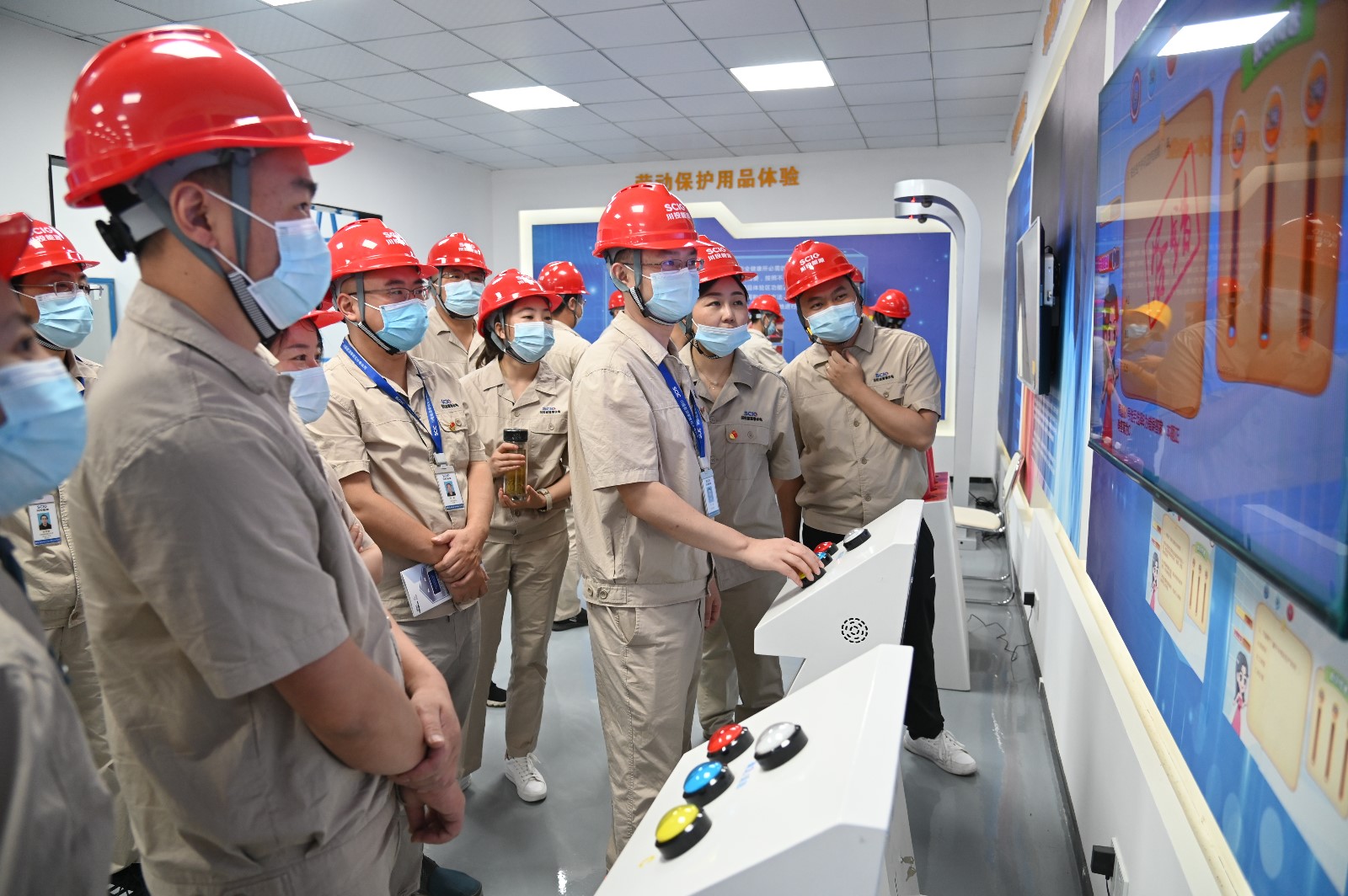 隨后,全體人員在公司安全體驗(yàn)館進(jìn)行了沉浸教學(xué),該體驗(yàn)館面積約700平方米,設(shè)有安全帶、有限空間、機(jī)械傷害、平衡木、護(hù)欄推倒、安全帽撞擊、高處墜落、觸電、滅火器使用、醫(yī)療急救、安全事故VR體驗(yàn)等體驗(yàn)項(xiàng)目,包含勞動(dòng)防護(hù)用品穿戴及使用、安全標(biāo)識(shí)及工程機(jī)械認(rèn)知、風(fēng)險(xiǎn)辨識(shí)、安全知識(shí)和應(yīng)急處置等教育培訓(xùn)內(nèi)容。本次安全體驗(yàn)教育培訓(xùn)通過展板展示、實(shí)景模擬、案例警示、知識(shí)答題、親身體驗(yàn)等方式,將施工現(xiàn)場(chǎng)常見的危險(xiǎn)源、危險(xiǎn)行為與事故類型具體化、實(shí)物化,充分展示工程建設(shè)需要學(xué)習(xí)掌握的安全知識(shí)和技能。
