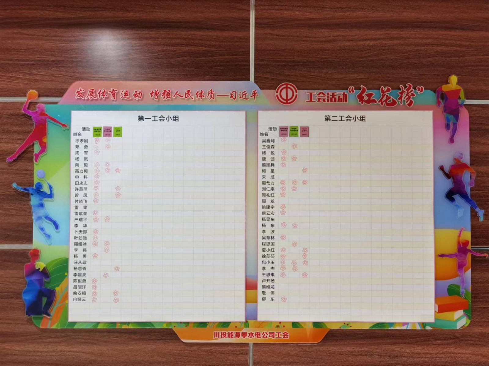 “紅花榜”主要是記錄職工參加公司及工會活動的載體,公司職工每參與一次公司或工會組織的大型活動,如運動會、知識競賽、勞動競賽、公益勞動、志愿者服務(wù)等,都將獲得“小紅花”一枚。參與活動越多,獲得的小紅花就越多。公司工會每年將對“紅花榜”紅花數(shù)量進行統(tǒng)計評比,“獎勤罰懶”,對參加活動多、紅花數(shù)量多的“紅人”給予表彰鼓勵;反之,對于參加活動少、紅花數(shù)量少的員工采取相應(yīng)的懲罰教育。