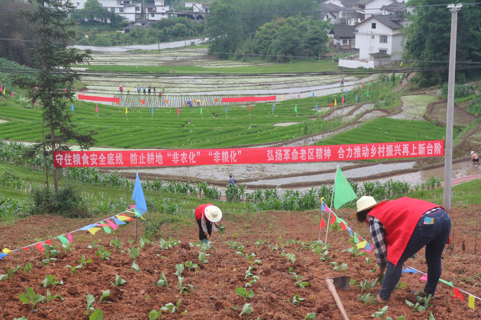習(xí)近平總書記指出:糧食安全是“國之大者”。5月30日,正值春播春種之際,由天全縣農(nóng)業(yè)農(nóng)村局、鄉(xiāng)村振興局、衛(wèi)生健康局、仁義鎮(zhèn)人民政府主辦,縣仁義鎮(zhèn)紅軍村、腳基坪電廠承辦,川投能源所屬川投電力公司協(xié)辦的首屆川投能源、天全縣“企地共建杯”農(nóng)業(yè)勞動技能大賽在紅色故里──天全縣仁義鎮(zhèn)紅軍村拉開帷幕。縣仁義鎮(zhèn)黨委書記桑朝東主持開幕式并致詞,縣人大常委會副主任彭武到會宣布開幕,川投電力黨委書記、董事長楊濤宣布比賽規(guī)則。