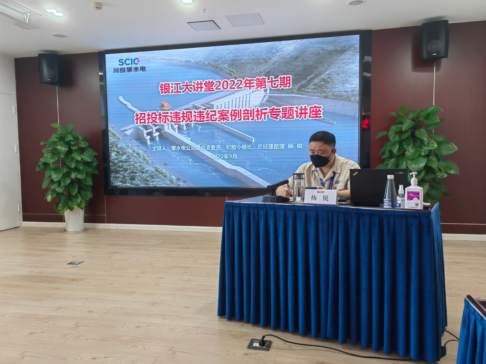 為確?!罢型稑祟I域突出問題專項治理落實陽光采購專項工作”落地落實,結(jié)合攀水電公司“銀江大講堂”活動安排,9月18日上午,攀水電公司黨總支委員、紀檢小組長、總經(jīng)理助理楊銳圍繞“招投標違規(guī)違紀案例剖析”講授了一堂廉潔黨課,攀水電公司、攀新能源公司在攀領導、中干及員工30余人參加。