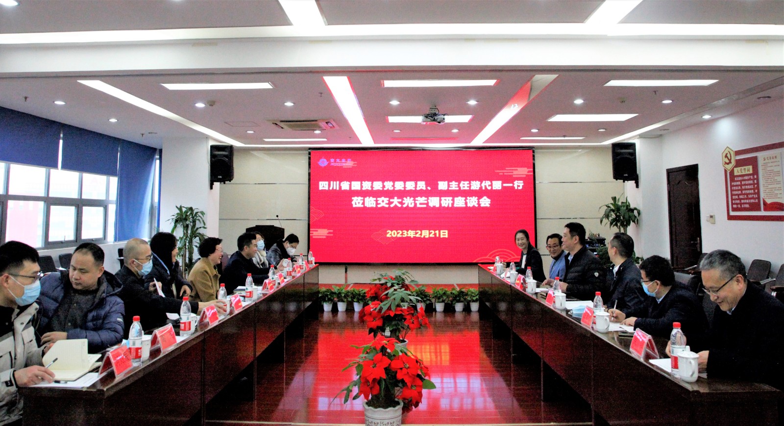 2月21日,省國(guó)資委黨委委員、副主任游代麗率隊(duì)赴交大光芒調(diào)研指導(dǎo)工作,省國(guó)資委巡視員符定平、財(cái)務(wù)監(jiān)督與評(píng)價(jià)處、監(jiān)督工作處、企業(yè)改革處一同參加調(diào)研。川投集團(tuán)財(cái)務(wù)總監(jiān)黃勁、資金財(cái)務(wù)部部長(zhǎng)葉光明隨同調(diào)研。交大光芒黨總支書(shū)記、總經(jīng)理劉成輝以及經(jīng)營(yíng)班子成員、黨總支委員參加調(diào)研座談會(huì)。