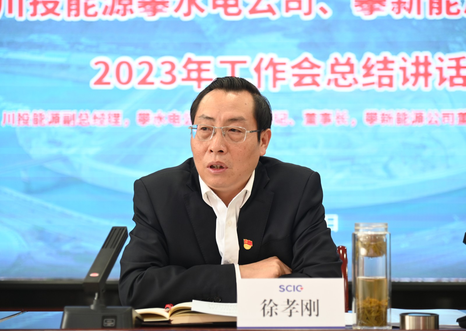 川投能源副總經(jīng)理,攀水電公司黨總支書(shū)記、董事長(zhǎng),攀新能源公司董事長(zhǎng)徐孝剛作了題為《踔厲奮發(fā)踏征程,鉚足干勁拼發(fā)展》的主題講話。他表示:2022年是銀江水電站全面進(jìn)入主體工程施工的關(guān)鍵之年和攀新能源公司新能源快速發(fā)展的突破之年,攀水電公司團(tuán)結(jié)帶領(lǐng)各參建單位,連續(xù)克服新冠疫情多發(fā)、地質(zhì)條件復(fù)雜、砂石骨料短缺等各種影響,精心謀劃施工組織,合理調(diào)配施工資源,組織開(kāi)展“決戰(zhàn)四季度、大干一百天,力爭(zhēng)提前完成二期基坑開(kāi)挖,加快主體工程施工,獻(xiàn)禮二十大”等勞動(dòng)競(jìng)賽,確保了銀江水電站工程建設(shè)高效有序推進(jìn)和公司各項(xiàng)年度目標(biāo)任務(wù)順利完成。攀新能源公司成功收購(gòu)了廣西農(nóng)光公司51%控股權(quán),實(shí)現(xiàn)了新能源光伏大型控股項(xiàng)目的重大“破冰”;完成了攀枝花郵處中心首個(gè)自主開(kāi)發(fā)新能源項(xiàng)目的建設(shè)投運(yùn),實(shí)現(xiàn)了分布式光伏項(xiàng)目從“0”到“1”的關(guān)鍵性突破;有力推動(dòng)了攀新能源公司快速高質(zhì)量發(fā)展。