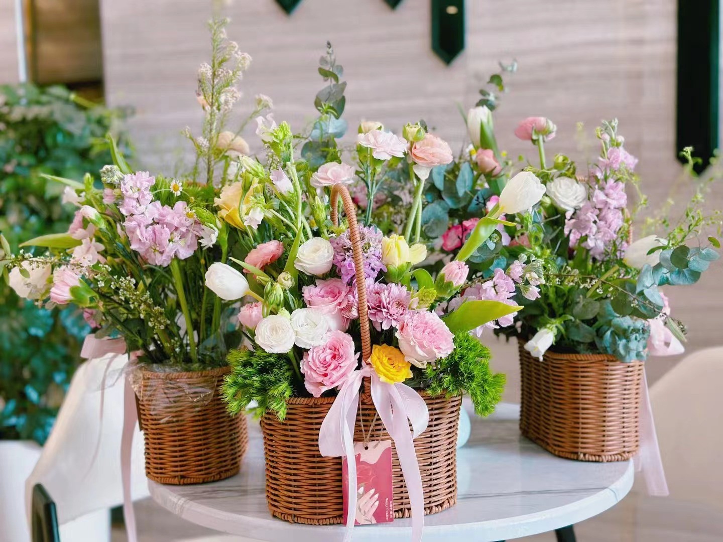 緊接著組織了DIY插花活動,邀請專業(yè)花藝師現(xiàn)場講解鮮花常識、色彩搭配、保鮮方法、花枝修剪和插花的基本技巧。在花藝師指導下,大家躍躍欲試,邊學邊交流,紛紛行動起來,開啟鮮花“綻放”之旅,現(xiàn)場春意盎然、熱鬧非凡,一雙雙巧手將各色花卉配以枝葉點綴,讓一把把散落的花材變成了美麗靈動又具有個性特色的花藝作品,大家喜笑顏開,擁抱著自己精心制作的花籃合影留念。
