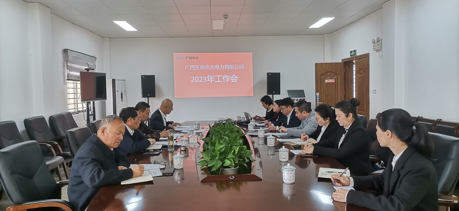 隨后,徐孝剛一行在桂平光伏電站升壓站二樓會議室召開了廣西農(nóng)光公司2023年工作會,會議由攀新能源公司公司、廣西農(nóng)光公司財務(wù)總監(jiān)王俊森主持,公司全體員工(兼職)、運維單位代表參加會議。會議學(xué)習(xí)傳達(dá)了川投集團(tuán)、川投能源、攀新能源公司2023年工作會精神;覃鳳荏作了廣西農(nóng)光公司《2022年工作總結(jié)及2023年工作計劃》的報告,重點匯報了2022年度主要指標(biāo)完成情況、主要工作舉措及成效、存在的問題和困難以及2023年工作打算等;王俊森代表公司領(lǐng)導(dǎo)班子作廉潔從業(yè)公開承諾;公司主要領(lǐng)導(dǎo)分別與部門代表簽訂了2023年《“雙廉”責(zé)任書》《部門目標(biāo)責(zé)任書》。