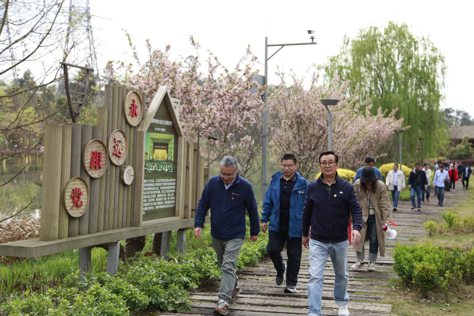 前往梨花黨校途中,全體黨員走上用鐵路枕木鋪設(shè)而成的“天佑道”,一起緬懷中國鐵路發(fā)展歷程。“天佑道”為紀(jì)念“中國鐵路之父”“中國近代工程之父”——詹天佑而建設(shè),詹天佑是第一批庚子賠款赴美留學(xué)幼童,于1872年12歲時(shí)公派留學(xué)美國,1878年考入耶魯大學(xué)土木工程系 ,1905—1909年主持修建中國自主設(shè)計(jì)并建造的第一條鐵路——京張鐵路,并參與籌建滬嘉、洛潼、津蘆、錦州、萍醴、新易、潮汕、粵漢等鐵路,是中國近代鐵路工程專家,被譽(yù)為中國首位鐵路總工程師。2019年,中國首條智能鐵路——智能京張高鐵采用了交大光芒提供的智能供電調(diào)度系統(tǒng)。時(shí)光荏苒,在偉大的中國共產(chǎn)黨領(lǐng)導(dǎo)下,近代以后久經(jīng)磨難的中華民族迎來了從站起來、富起來到強(qiáng)起來的偉大飛躍,中國人民正意氣風(fēng)發(fā)走在習(xí)近平新時(shí)代中國特色社會(huì)主義建設(shè)的壯麗征程上,交大光芒為交通強(qiáng)國奉獻(xiàn)了自己的力量,大家感到無比自豪,表示要繼承和發(fā)揚(yáng)老一輩鐵路人吃苦耐勞、自力更生、艱苦奮斗的精神,提供卓越的軌道交通產(chǎn)品和服務(wù),為綠色、安全出行保駕護(hù)航。