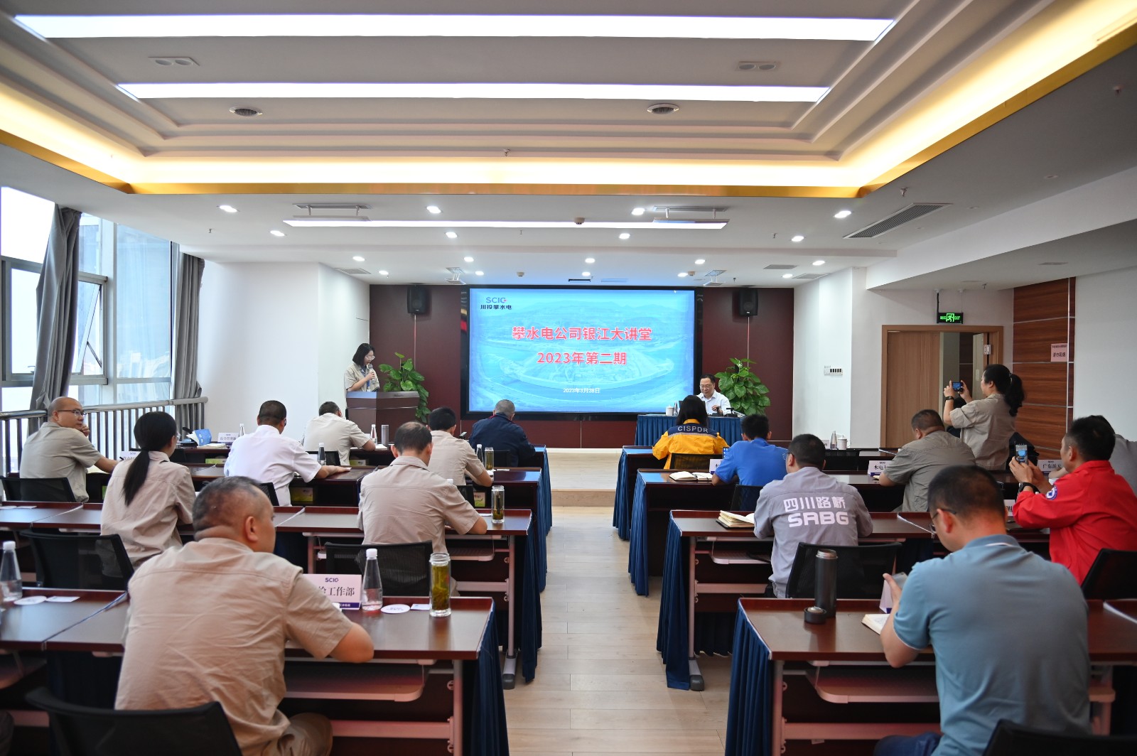在銀江水電站大壩基礎固結(jié)灌漿全面推進,建基面即將全部覆蓋之際,公司邀請長江地球物理探測(武漢)有限公司副總工程師、銀江水電站物探中心項目經(jīng)理、教授級高級工程師蔡加興,在銀江大講堂上給公司各部門及各參建單位,作了題為《物探檢測方法技術與應用》的技術交流課,公司領導、各部門及各參建單位相關人員共30余人參加。