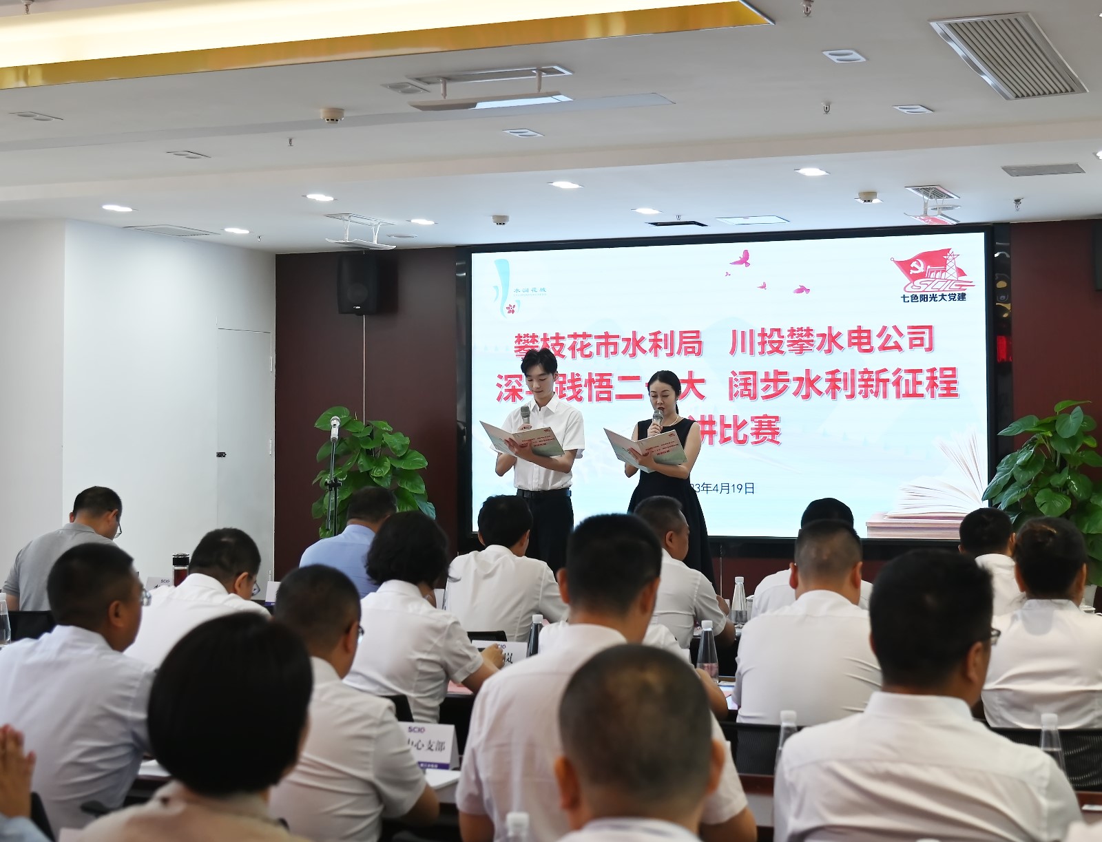 為全面貫徹黨的二十大精神,扎實開展學(xué)習(xí)貫徹習(xí)近平新時代中國特色社會主義思想主題教育,在攀水電黨總支開展主題教育領(lǐng)導(dǎo)干部讀書班期間,為豐富學(xué)習(xí)形式,營造濃厚學(xué)習(xí)氛圍,近日,攀水電公司與攀枝花市水利局共同舉辦了“深學(xué)踐悟二十大、闊步水利新征程”深化“水潤花城”黨建品牌建設(shè)暨政企黨組織共建活動,開展征文和演講比賽。攀枝花市直機(jī)關(guān)工委常務(wù)副書記鮮明,攀枝花市水利局黨組成員、副局長林兆東,黨組成員、機(jī)關(guān)黨委書記胡嘉,川投能源副總經(jīng)理、攀水電公司黨總支書記、董事長、攀新能源董事長徐孝剛及讀書班成員參加此次活動并擔(dān)任評委。