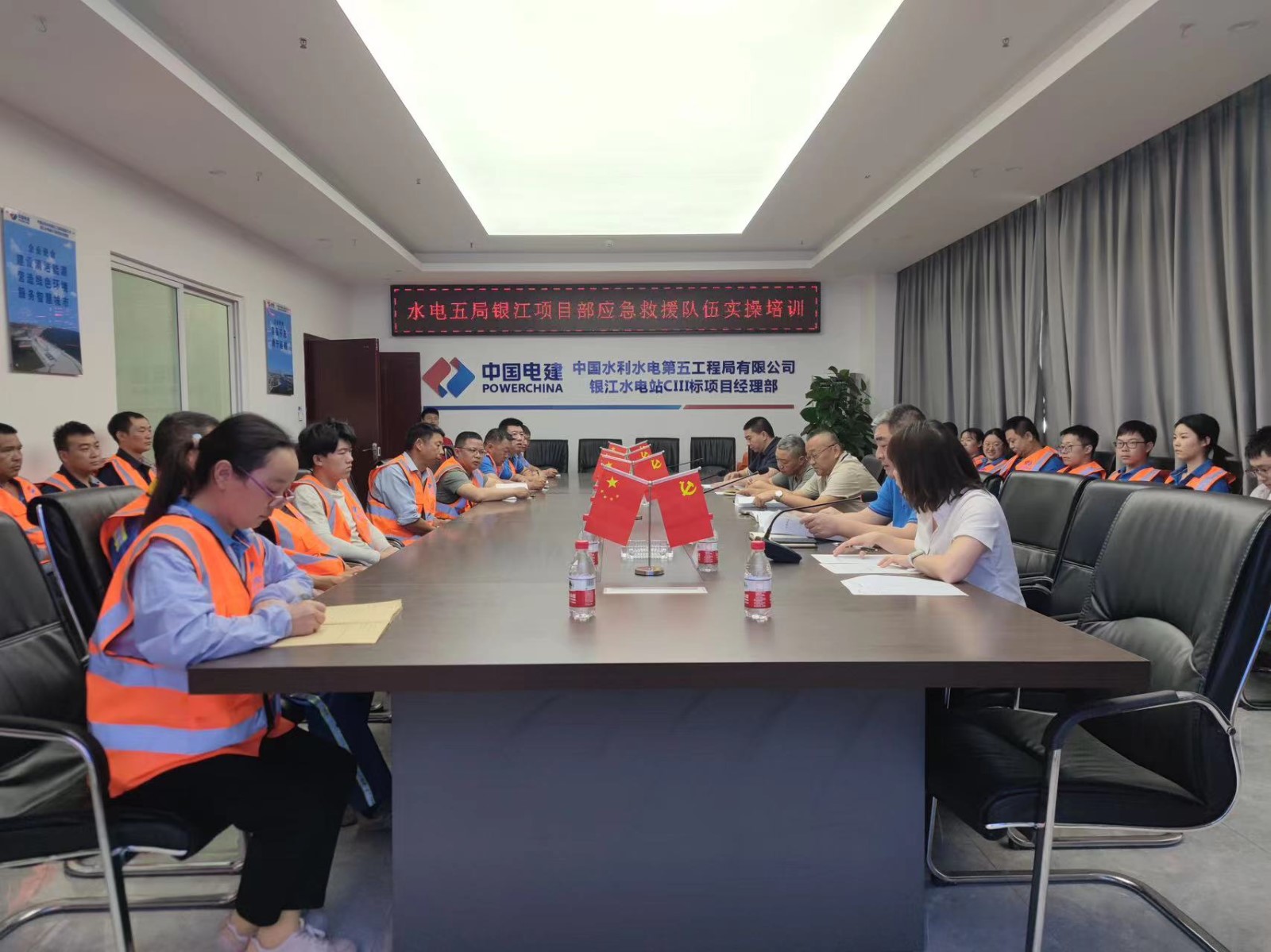 為深入學習貫徹落實習近平總書記關(guān)于防災(zāi)減災(zāi)救災(zāi)重要論述精神和黨的二十大精神,堅持“兩個至上”原則,嚴格落實“兩個堅持,三個轉(zhuǎn)變”防災(zāi)減災(zāi)救災(zāi)理念,在汛期、應(yīng)急演練月來臨之前,為進一步提高防災(zāi)減災(zāi)救災(zāi)和突發(fā)公共事件處置保障能力,近日,公司在水電五局銀江項目部召開了應(yīng)急救援隊伍實操取證培訓班開班儀式,攀水電公司副總經(jīng)理唐伽及安全環(huán)保部、各參建單位人員共計40余人參加。