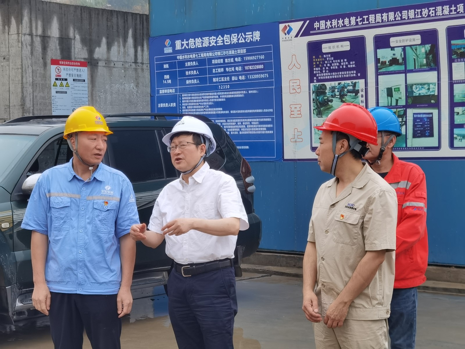 楊平一行深入銀江水電站施工現(xiàn)場(chǎng),查看安全風(fēng)險(xiǎn)管控情況,了解工程建設(shè)及安全生產(chǎn)情況,結(jié)合安全生產(chǎn)強(qiáng)化年、重大事故隱患專項(xiàng)排查整治、防汛減災(zāi)等工作,對(duì)現(xiàn)場(chǎng)液氨制冷系統(tǒng)等重點(diǎn)部位、重點(diǎn)設(shè)備、施工作業(yè)面的安全措施落實(shí)情況開展督導(dǎo)檢查。