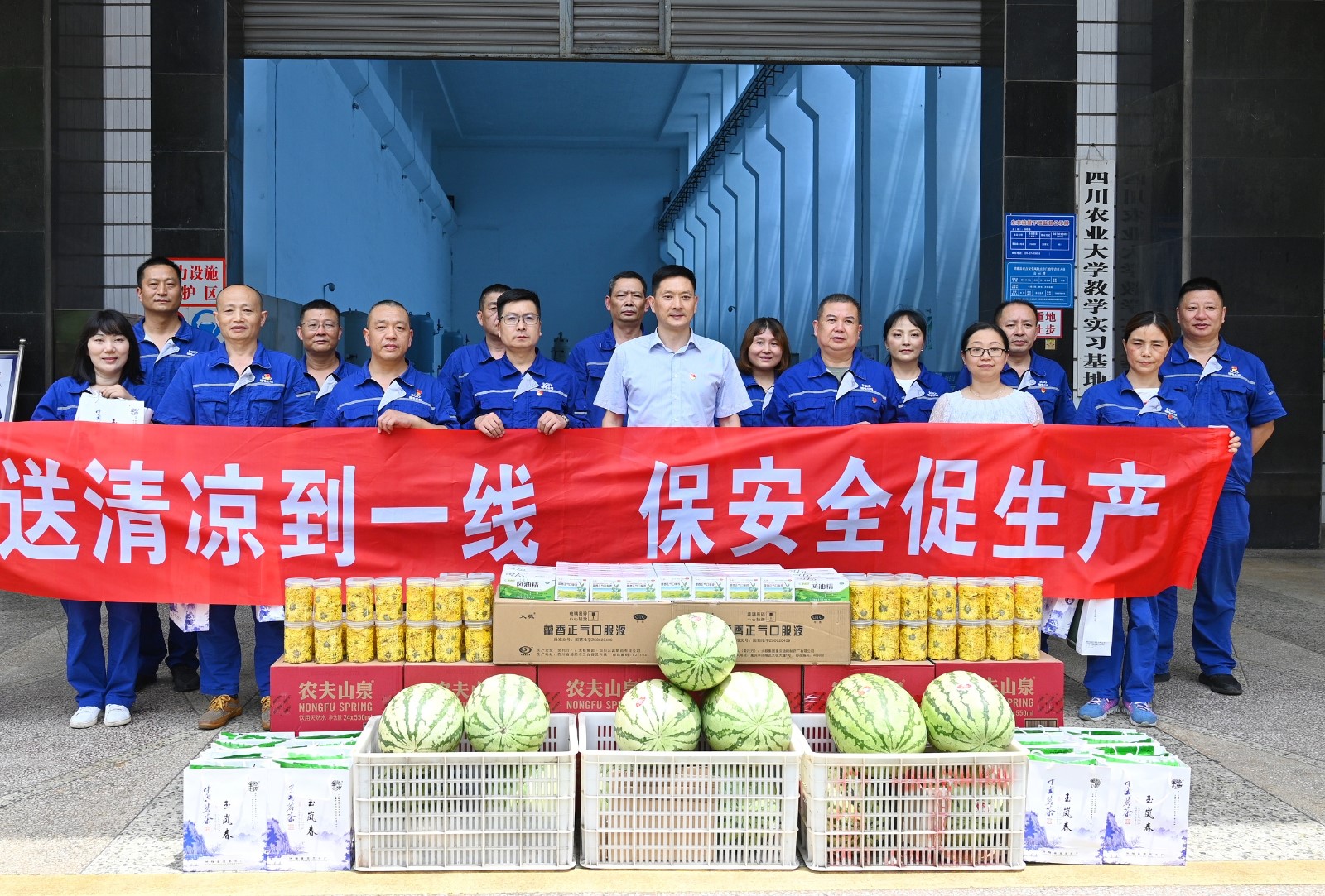 冉蘭平一行帶著對一線職工的牽掛與關(guān)懷,冒著酷暑來到槽漁灘公司電廠,為奮戰(zhàn)在工作崗位上的一線職工送上夏日里的一份心意。冉蘭平向電廠職工送上了菊花茶、藿香正氣液、清涼油、西瓜等防暑降溫用品,并叮囑他們在崗位上做好防暑降溫、安全生產(chǎn)工作。