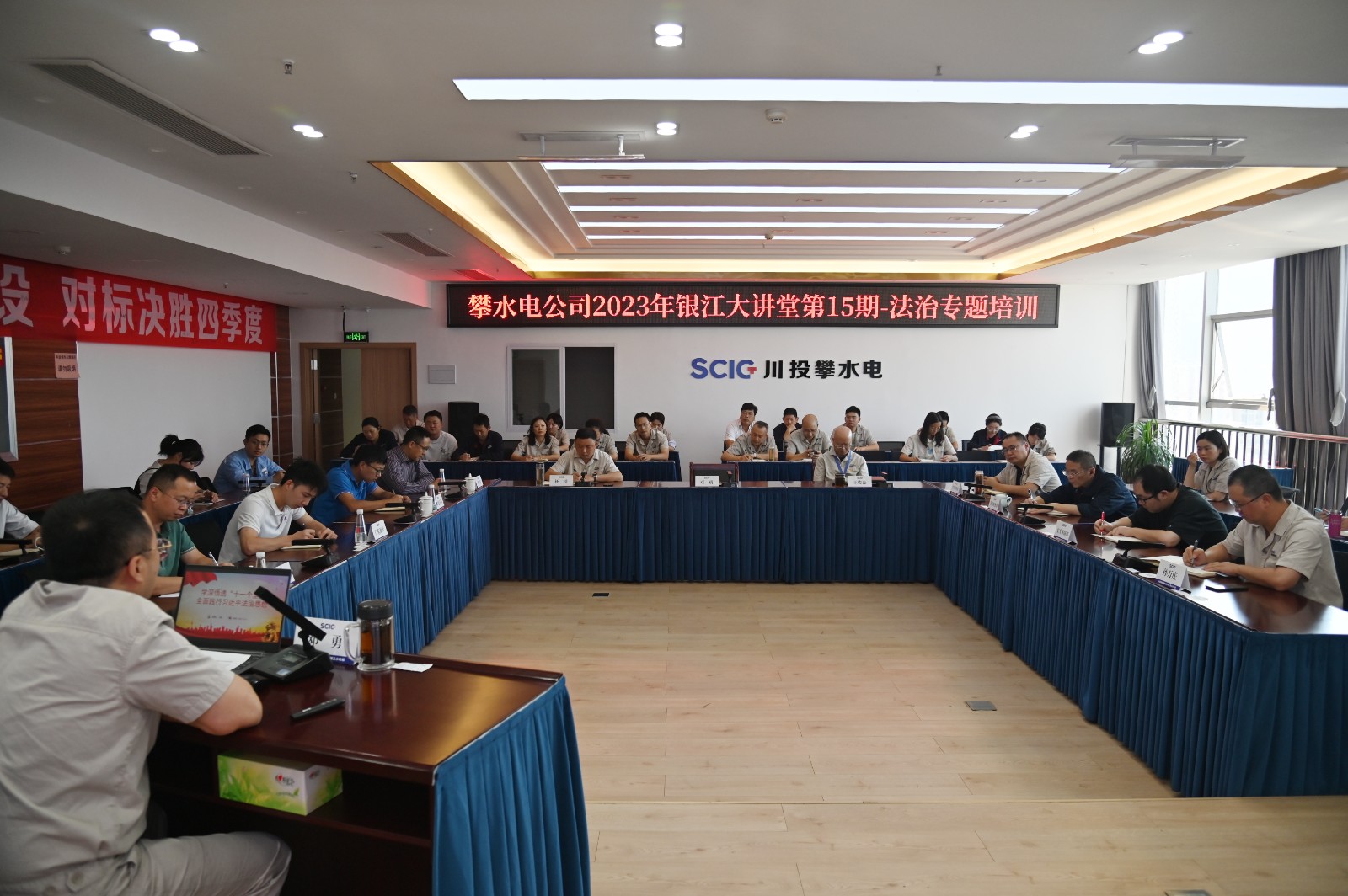 為深入學(xué)習(xí)宣貫黨的二十大精神,認真貫徹落實習(xí)近平法治思想,積極落實省國資委、川投集團、川投能源關(guān)于“送法進企業(yè)”活動要求,進一步提升企業(yè)依法治理和合規(guī)經(jīng)營能力,切實增強廣大干部職工法律意識和法治素養(yǎng),2023年10月31日,公司精心組織開展了第15期銀江大講堂——法治專題培訓(xùn),公司在攀領(lǐng)導(dǎo)、員工及參建單位人員共計40余人參加培訓(xùn)。