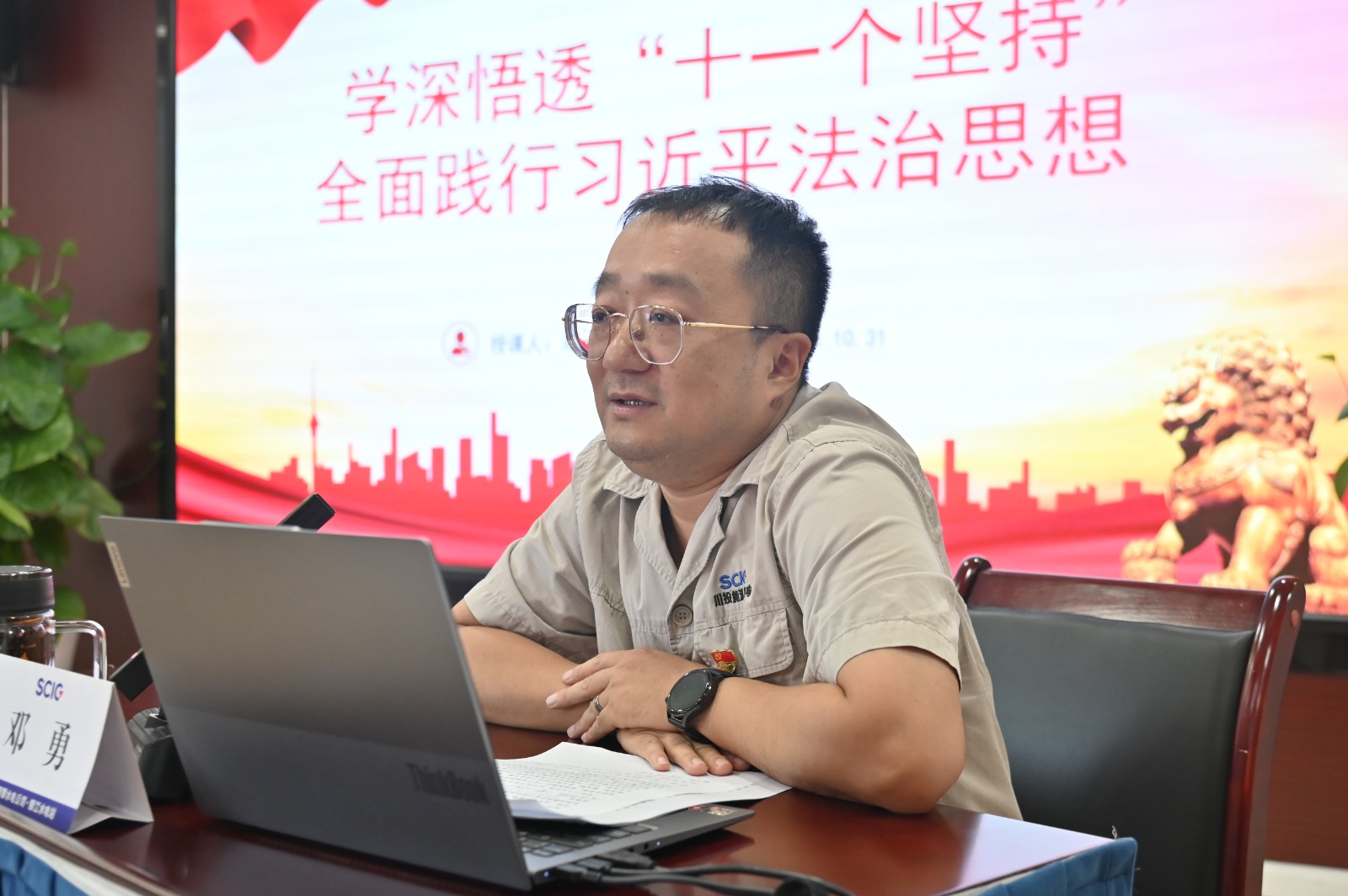 會上,公司黨總支副書記、董事會秘書、工會主席鄧勇以“學(xué)深悟透‘十一個堅持’,全面踐行習(xí)近平法治思想”為題,從習(xí)近平法治思想的核心理念、總體部署、關(guān)鍵舉措、重要成果四個方面做了系統(tǒng)闡述,詳細解讀了學(xué)深悟透“十一個堅持”的內(nèi)在邏輯和豐富內(nèi)涵,進一步深化了公司員工對習(xí)近平法治思想的理解和認識。