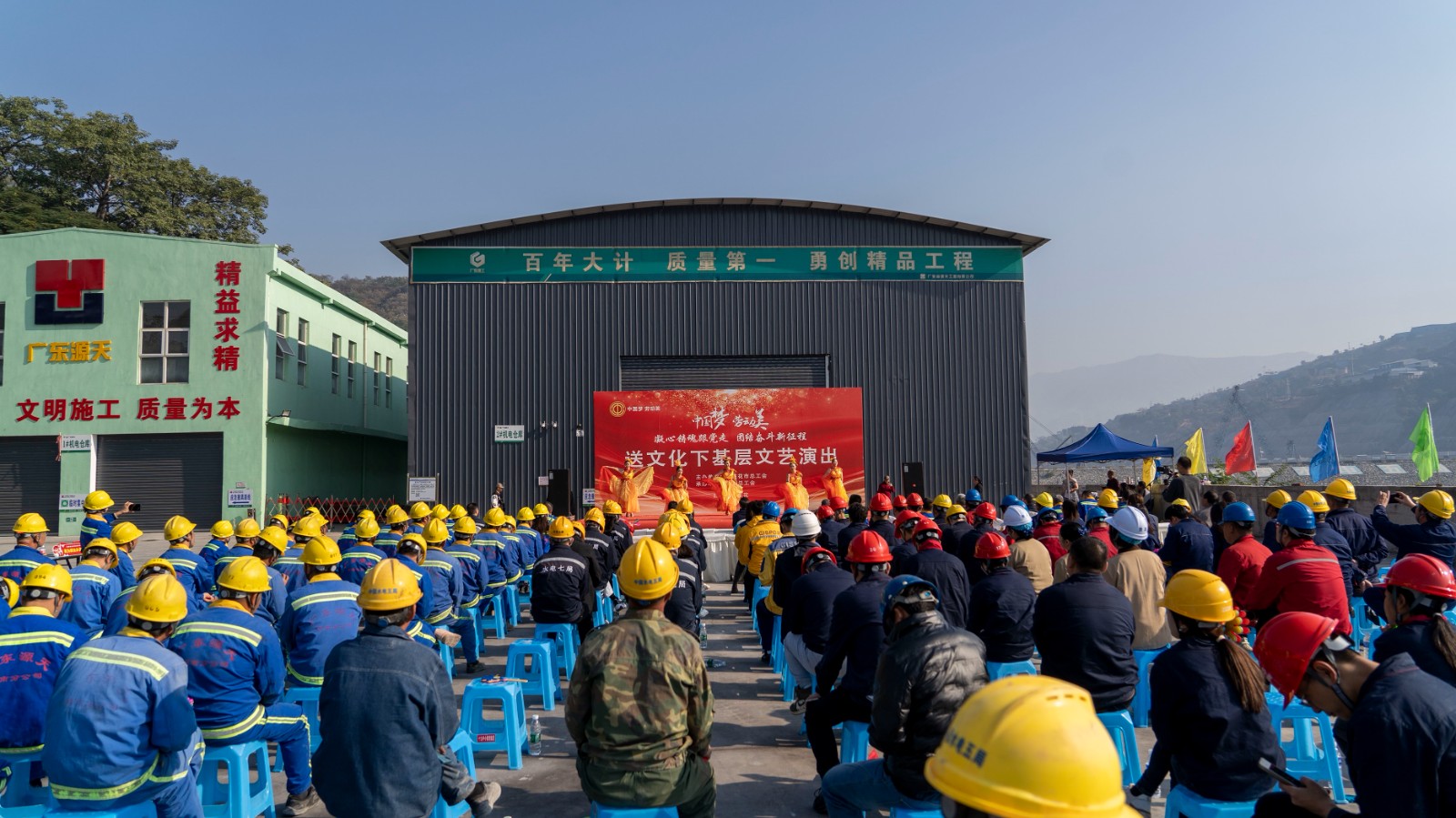 為深入學(xué)習(xí)貫徹黨的二十大精神、習(xí)近平總書記來川視察重要指示精神,11月29日上午,由攀枝花市總工會(huì)主辦,東區(qū)總工會(huì)、攀水電公司承辦的“中國夢(mèng)·勞動(dòng)美——凝心鑄魂跟黨走 團(tuán)結(jié)奮斗新征程”2023年“送文化下基層”文藝演出在銀江水電站工地火熱開展。川投能源副總經(jīng)理,攀水電公司黨總支書記、董事長(zhǎng)徐孝剛出席活動(dòng),攀枝花市總工會(huì)、東區(qū)總工會(huì)、攀水電公司及參建單位200余人參加。