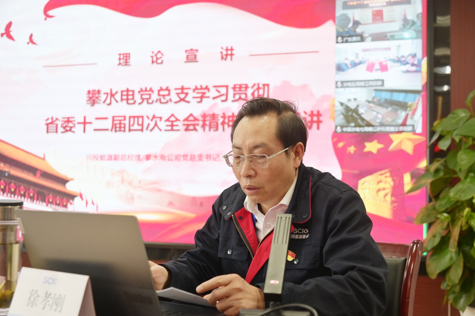 宣講會上,徐孝剛從深入領(lǐng)會全會主題、深入領(lǐng)會全會精神、推動省委全會決策部署在川投集團落地見效、推動省委全會決策部署在攀水電公司及銀江水電站落地見效四個方面進行了系統(tǒng)深入的解讀剖析,全體黨員干部對新時代新征程推進城鄉(xiāng)融合發(fā)展的總體要求、工作思路和總體目標有了明確的方向;傳達了省國資委黨委、川投集團黨委和川投能源黨委關(guān)于貫徹落實省委十二屆四次全會精神的意見和要求,著重圍繞奮力沖刺銀江水電站下閘蓄水目標、落實川投集團托底性幫扶工作和做好攀水電公司對口幫扶村城鄉(xiāng)融合工作三個方面進行了深入探討。