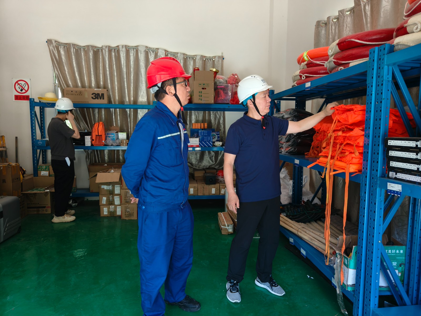 檢查組一行首先到一線查看了升壓站、柴油發(fā)電機(jī)室、中控室、主廠房等區(qū)域,重點(diǎn)檢查了防汛物資儲(chǔ)備情況以及消防器材和檢查記錄。檢查過(guò)程中,陶世賢指出,防汛物資必須嚴(yán)格管理,要確保質(zhì)量、數(shù)量滿足要求,對(duì)過(guò)期或不合格的物資要及時(shí)更換處理;消防器材采購(gòu)必須嚴(yán)格把控,定期檢查;柴油儲(chǔ)備要嚴(yán)格管理,做好防爆措施。