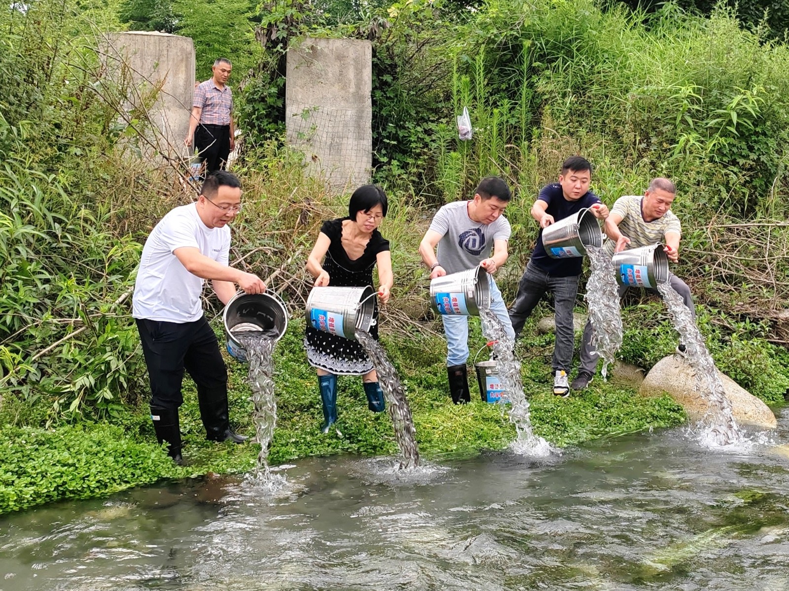 上午10時,位于通濟(jì)驛站附近的湔江河段魚類增殖放流投放點(diǎn)橫幅飄揚(yáng)、人潮涌動,在彭州市農(nóng)業(yè)農(nóng)村局、通濟(jì)鎮(zhèn)政府等主管部門人員的現(xiàn)場指導(dǎo)和周邊村鎮(zhèn)群眾代表的共同見證下,公司人員現(xiàn)場放流了珍貴的齊口裂腹魚苗共計(jì)20000尾,將新的生機(jī)和活力注入碧波蕩漾的河流。