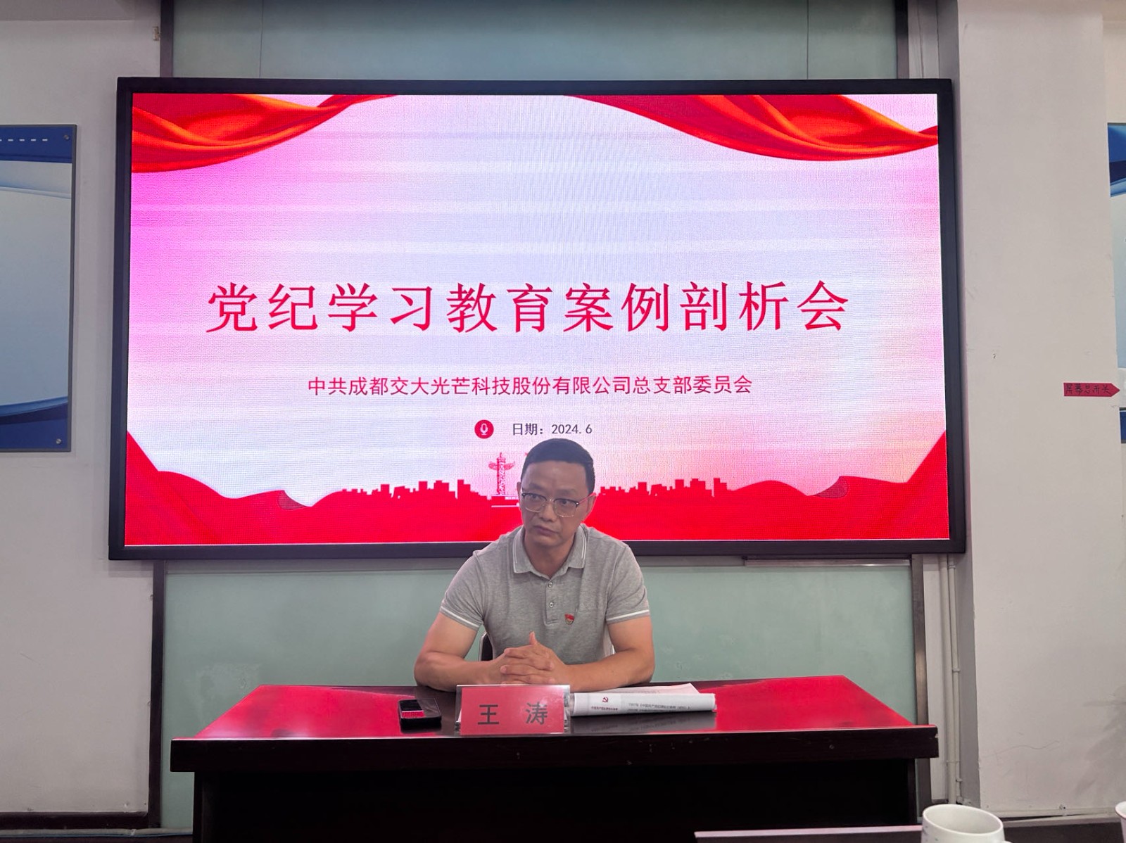 為認(rèn)真貫徹黨中央和省委關(guān)于開展黨紀(jì)學(xué)習(xí)教育的部署要求,交大光芒黨總支于6月28日開展2024年黨紀(jì)學(xué)習(xí)教育專題警示教育。公司領(lǐng)導(dǎo)班子成員、中層副職以上管理人員及全體黨員參加本次大會,會議由公司黨總支書記、常務(wù)副總經(jīng)理王濤主持。