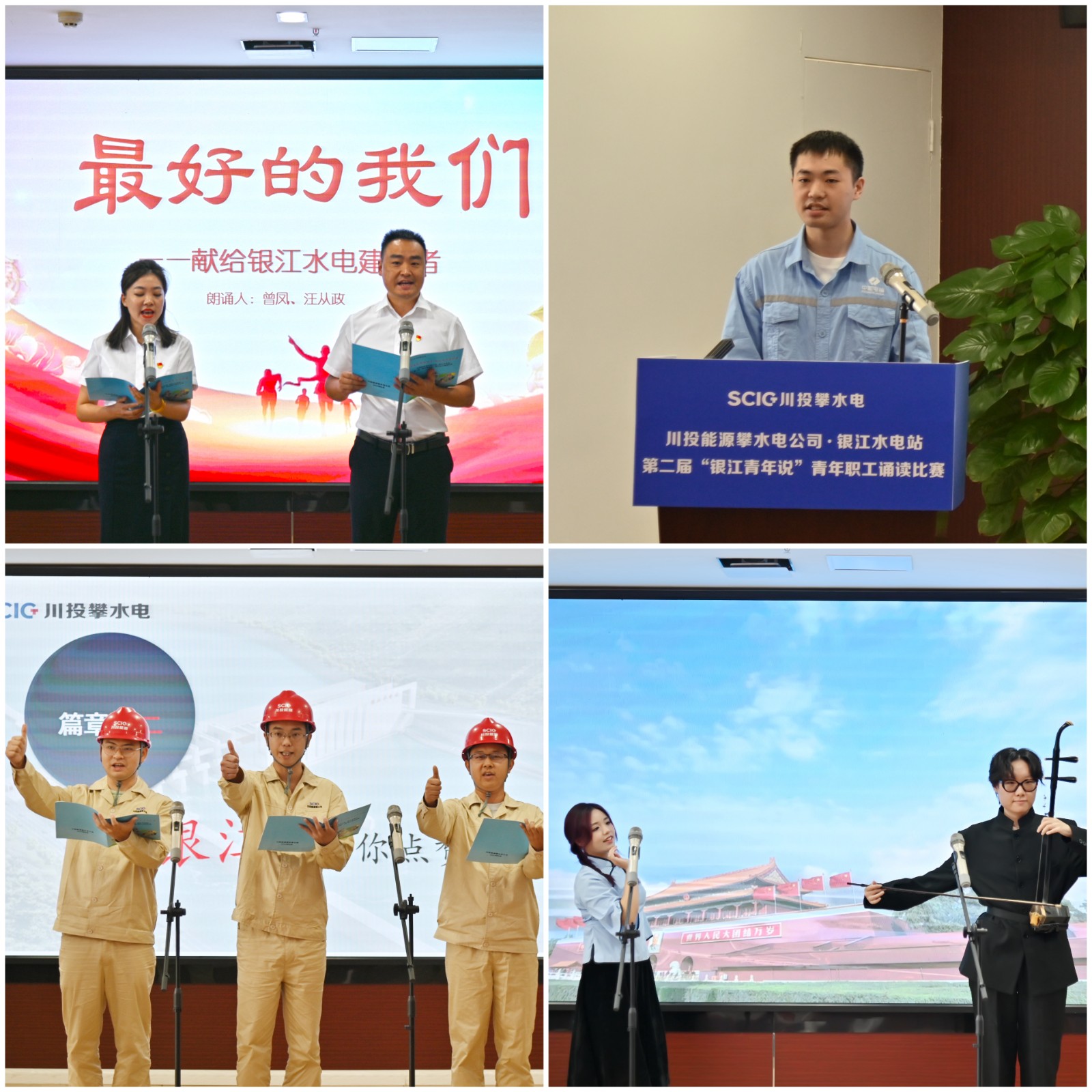本次比賽以“蓄水發(fā)電加油干,銀江青年顯擔(dān)當(dāng)”為主題,來(lái)自公司及參建單位的10組14名選手結(jié)合各自的工作崗位精心創(chuàng)作了誦讀作品,他們中有剛退伍的發(fā)電部新兵,有剛畢業(yè)的財(cái)務(wù)新手,還有久經(jīng)沙場(chǎng)的一線職工,不同崗位、各色服飾、創(chuàng)意滿滿、精彩紛呈。來(lái)自水電五局項(xiàng)目部的黃山珊、扈文博身穿中國(guó)風(fēng)服裝,手拿傳統(tǒng)樂器二胡,以優(yōu)美的舞姿和深情的誦讀,回顧了歷史長(zhǎng)河的中熱血青年,贊美了日夜奮戰(zhàn)在施工一線的銀江青年,充分展現(xiàn)了當(dāng)代青年的文化自信,勇奪比賽第一名;平日里不善言辭、埋頭苦干的工程小伙也勇敢站上講臺(tái),致敬了他們心中“年輕的戰(zhàn)場(chǎng)”,以一段充滿激情的歌聲瞬間把現(xiàn)場(chǎng)氣氛點(diǎn)燃;還有發(fā)電部新入職的小姑娘,外表文靜的她卻有著極強(qiáng)的爆發(fā)力,讓大家刮目相看。