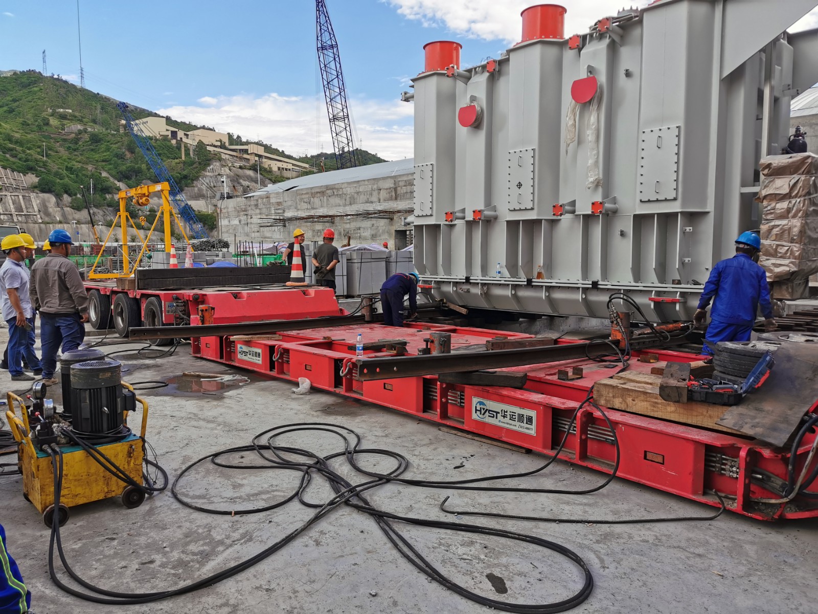 8月6日下午,一輛裝載主變壓器的大型貨車緩緩駛進(jìn)銀江水電站尾水平臺1號主變壓器安裝場,十余名工人冒著高溫對變壓器本體進(jìn)行卸車、檢查后,變壓器本體順著軌道緩緩地被推進(jìn)到指定位置,經(jīng)過5個小時的連續(xù)奮戰(zhàn),1號主變壓器本體順利精準(zhǔn)安裝就位,向著銀江水電站年底蓄水發(fā)電目標(biāo)又邁出了堅實的一步。