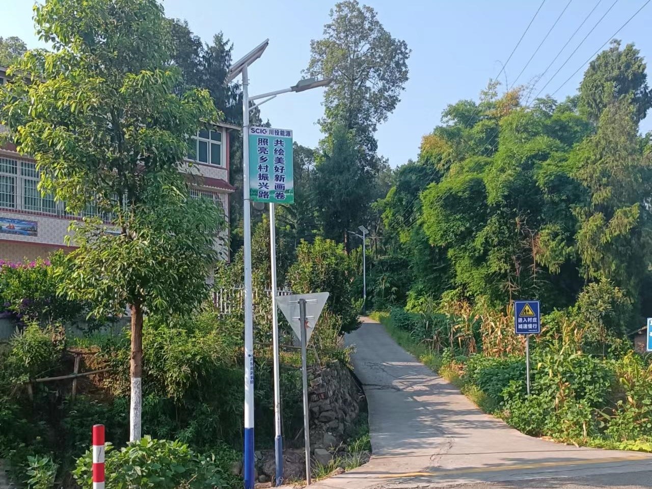 夜間出行不便是困擾金龍村多年的一大難題,村民們普遍反映,從金龍村到G245國道是外出的主干道,平時車流量較大,村民日常勞作早出晚歸,兩側沒有路燈,存在一定的交通安全隱患。川投電力堅持急事急辦,在這段2.1公里的出村主干道上安裝起54盞太陽能路燈,一舉解決了長期困擾該村的夜間道路照明問題。