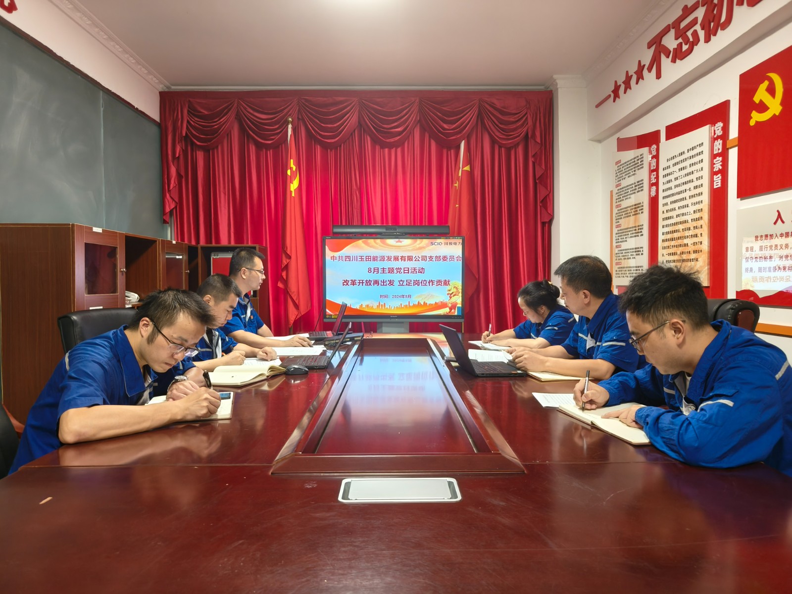 根據(jù)川投電力黨委部署安排,8月27日,玉田黨支部組織開展“改革開放再出發(fā)、立足崗位作貢獻(xiàn)”主題黨日活動(dòng),深入學(xué)習(xí)貫徹黨的二十屆三中全會(huì)精神,結(jié)合工作實(shí)際開展專題學(xué)習(xí)研討。會(huì)議由黨支部書記、廠長葉勁馳主持,支部全體黨員、發(fā)展對(duì)象、入黨積極分子參加。