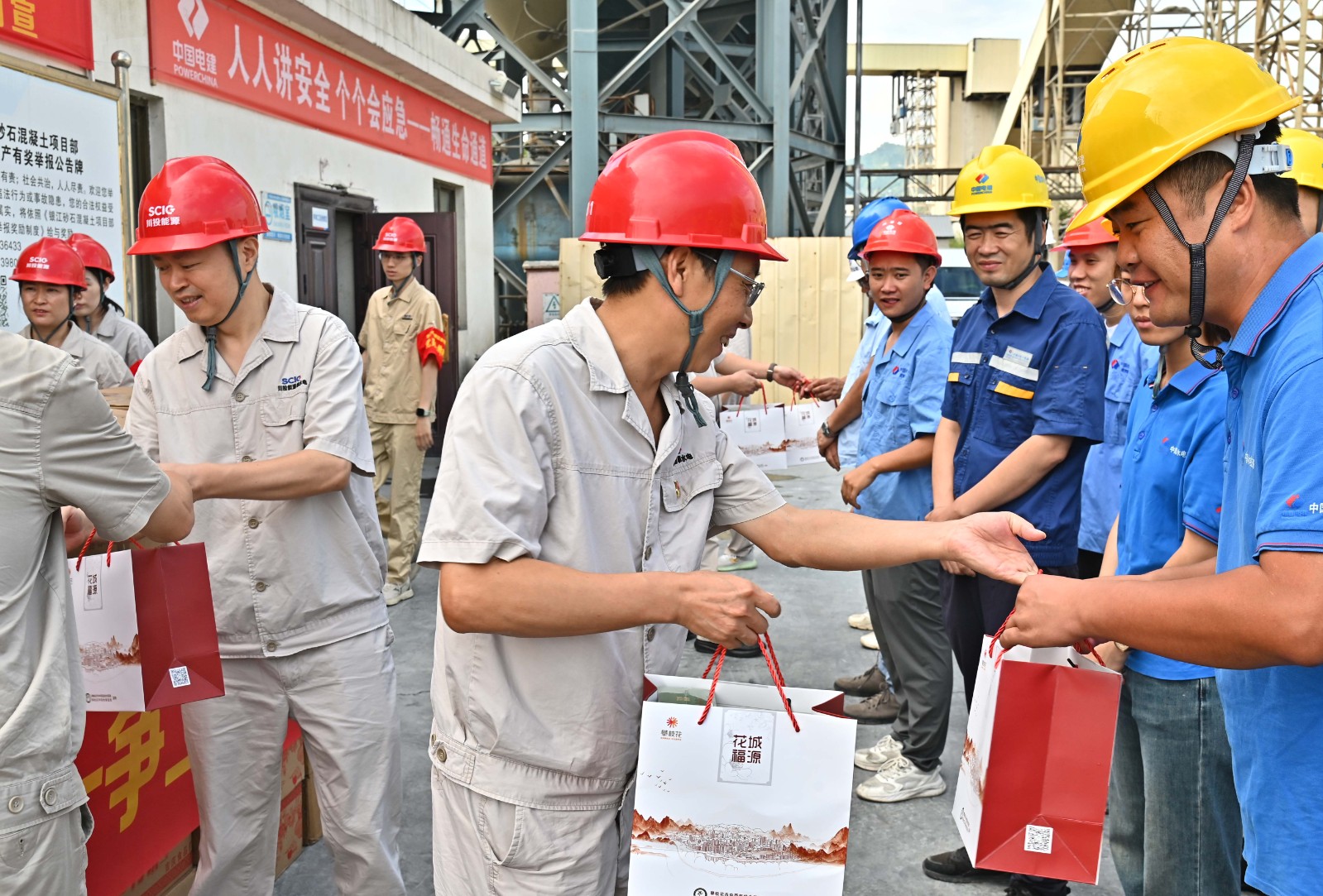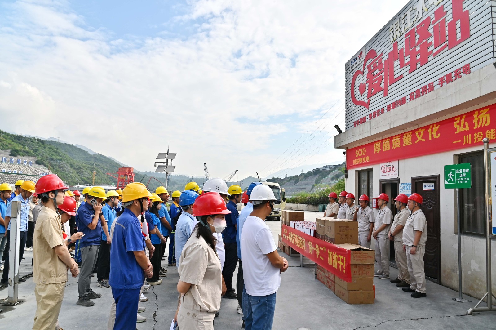 9月17日,正值萬(wàn)家團(tuán)圓的中秋佳節(jié),而銀江水電站工地依舊機(jī)器轟鳴,一派熱火朝天的繁忙景象。川投能源副總經(jīng)理、攀水電公司黨總支書(shū)記、董事長(zhǎng)徐孝剛帶領(lǐng)攀水電公司領(lǐng)導(dǎo)班子全體成員來(lái)到愛(ài)心驛站,為1200余名建設(shè)者送上香甜的月餅和清香的涼茶,向他們表達(dá)深切慰問(wèn)與崇高敬意。