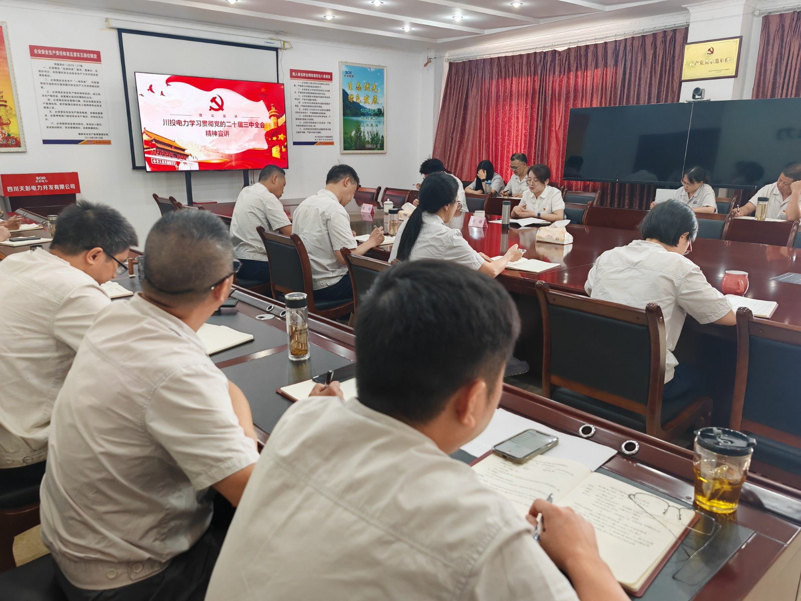 近日,川投電力黨委委員、紀(jì)委書(shū)記謝麗到天彭電力宣講黨的二十屆三中全會(huì)精神,引導(dǎo)廣大黨員干部進(jìn)一步把思想和行動(dòng)統(tǒng)一到黨中央決策部署上來(lái),激發(fā)干事創(chuàng)業(yè)活力。天彭電力領(lǐng)導(dǎo)班子成員、黨員、干部、關(guān)鍵崗位人員參加宣講會(huì)。