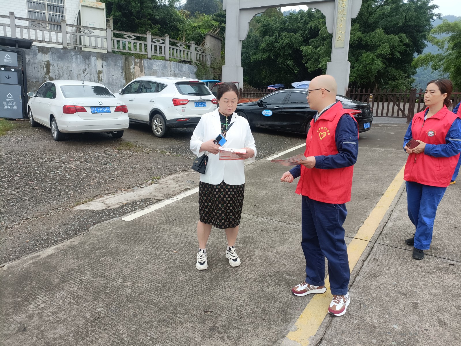 在槽漁灘風(fēng)景區(qū)入口,面對(duì)到來的游客,支部黨員張華耐心地為游客提供景區(qū)景點(diǎn)、游覽路線、交通信息等咨詢服務(wù),確保游客能夠順利游覽景區(qū)。黨員鄭健在景區(qū)停車場(chǎng)區(qū)域,協(xié)助景區(qū)工作人員維持交通秩序,引導(dǎo)游客有序停車,確保游客安全與景區(qū)秩序平穩(wěn)。黨員何曉紅、發(fā)展對(duì)象楊杰主動(dòng)向游客普及國(guó)家安全與森林防火知識(shí),引導(dǎo)廣大游客自覺維護(hù)國(guó)家安全,自覺遵守森林防火規(guī)定。